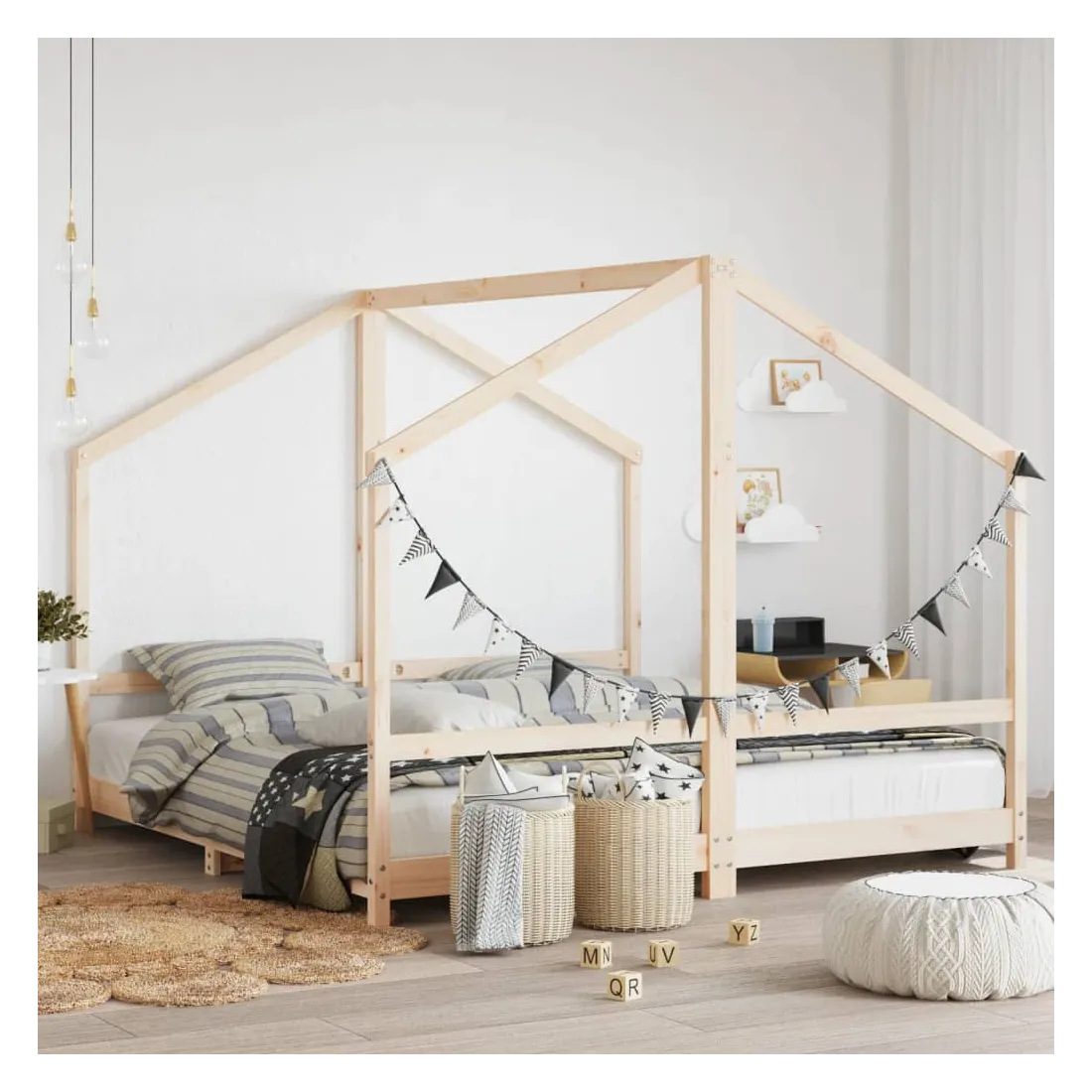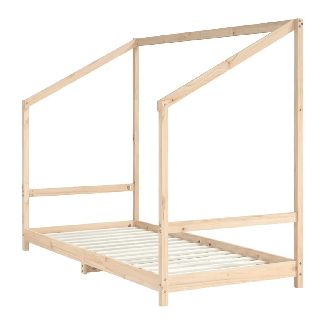 Créez la cachette ultime dans la chambre de vos enfants avec ce fantastique cadre de lit en bois pour enfants ! Matériau durable : le bois de pin massif est un matériau naturel magnifique. Le bois de pin a un grain droit et les nœuds donnent au matériau son aspect caractéristique et rustique.Lattes en contreplaqué : les lattes en contreplaqué assurent une bonne répartition du poids, garantissant à votre matelas le soutien et la respirabilité dont il a tant besoin.Design réfléchi : la hauteur du lit pour enfant est conçue pour être basse par rapport au sol, ce qui facilite l'entrée et la sortie dans et du lit pour votre enfant.Design pratique : le lit pour enfant est intelligemment conçu avec un cadre de lit où vous pouvez accrocher des rideaux de lit pour créer de l'intimité pour votre enfant. Il ne sert pas seulement d'espace de sommeil confortable, mais aussi d'espace de jeu et d'amusement pour vos enfants. Bon à savoir :Les matelas ne sont pas inclus avec ce lit. Nous proposons une sélection variée de matelas. Vous pouvez consulter notre boutique pour trouver les matelas assortis.