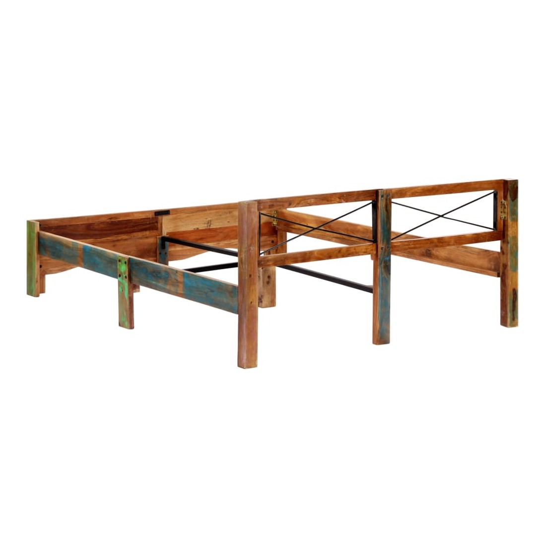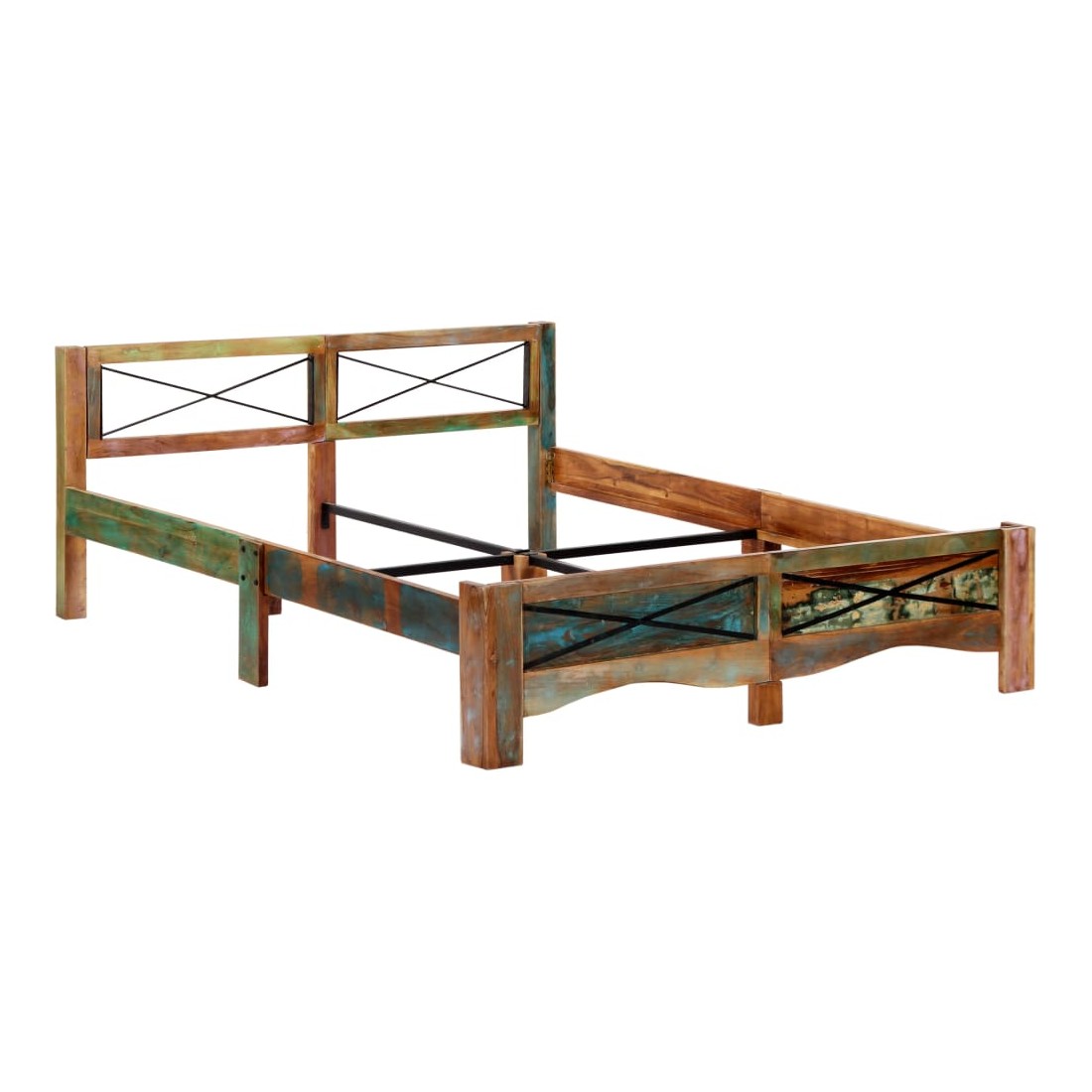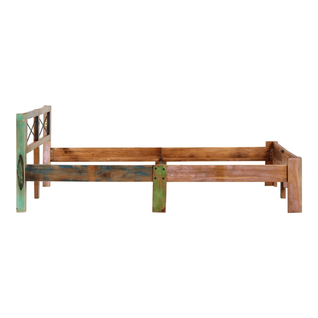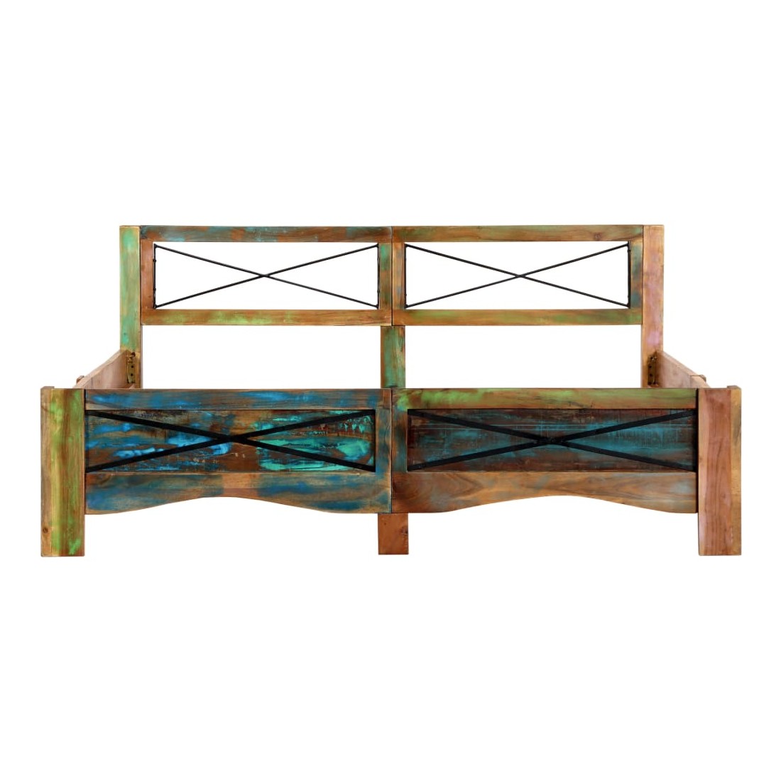 Ce cadre de lit en bois dégage un charme vintage et sera le centre d'attention de votre chambre à coucher. Ce cadre de lit de style antique est fait de bois de récupération massif provenant des solives, des planchers et des poutres de soutien de vieux bâtiments démolis et il peut être composé de différents types de bois comme le pin, le teck, le hêtre, le chêne, le cèdre, le bois de manguier, l'acacia, etc. Cela signifie que le bois de récupération conserve les caractéristiques de ces différents types de bois. Le bois de récupération est déjà vieilli, patiné et séché, donc il ne rétrécit pas et ne se plie pas. En conséquence, ce lit au design élégant est extrêmement stable, durable et attrayant. De plus, l'artisanat exquis et les grains de bois gracieux rendent chaque pièce de meuble distinctive et légèrement différente l'une de l'autre. Veuillez noter que le matelas n'est pas inclus dans la livraison. Remarque importante : les couleurs varient d'une pièce à l'autre, rendant chaque pièce unique. La livraison est aléatoire, garantissant l'exclusivité et l'individualité de votre produit.