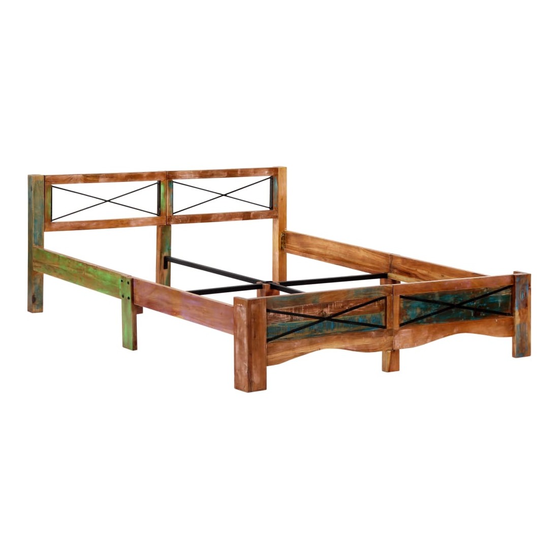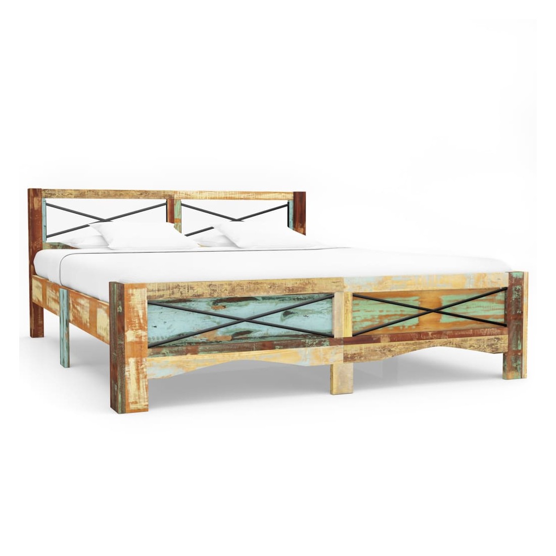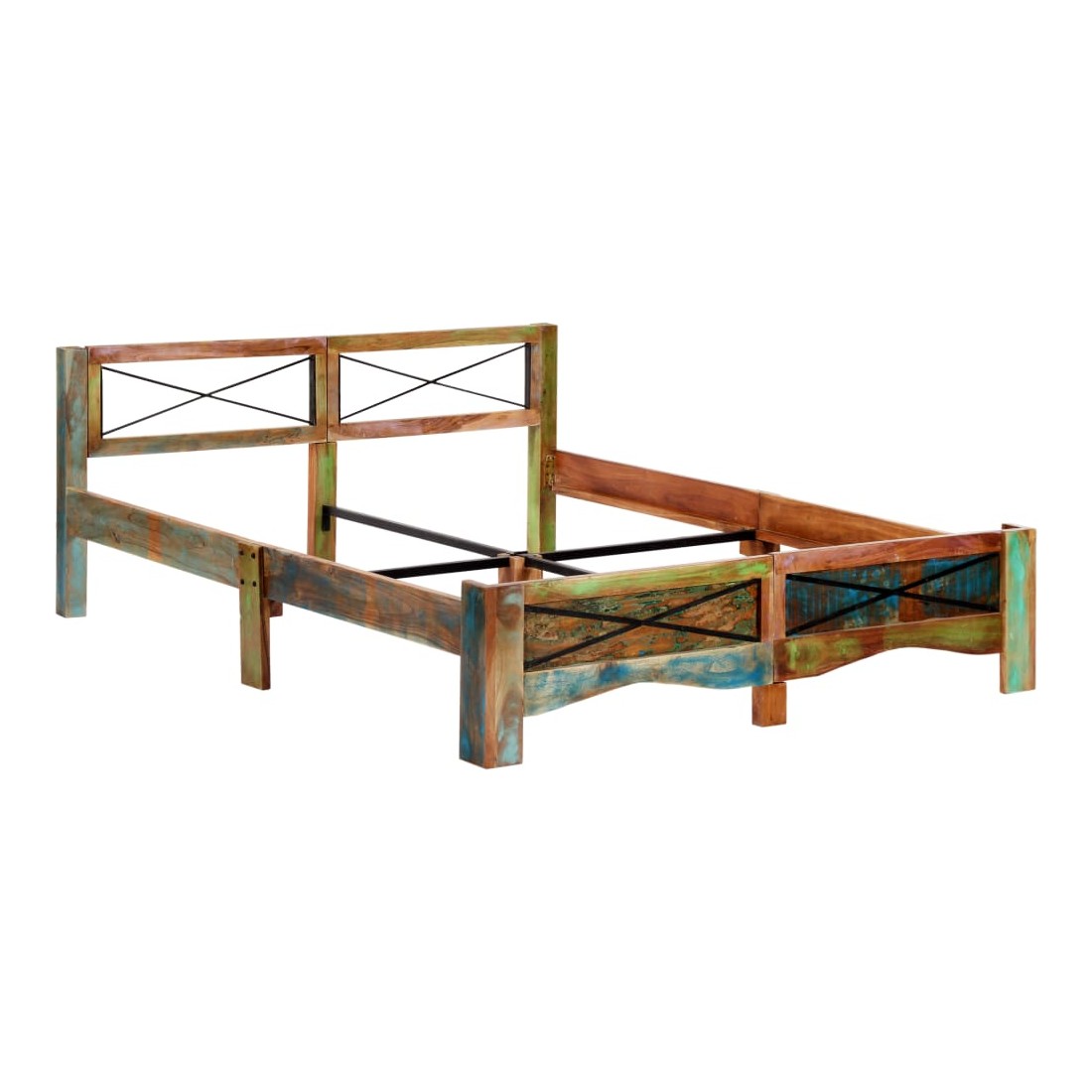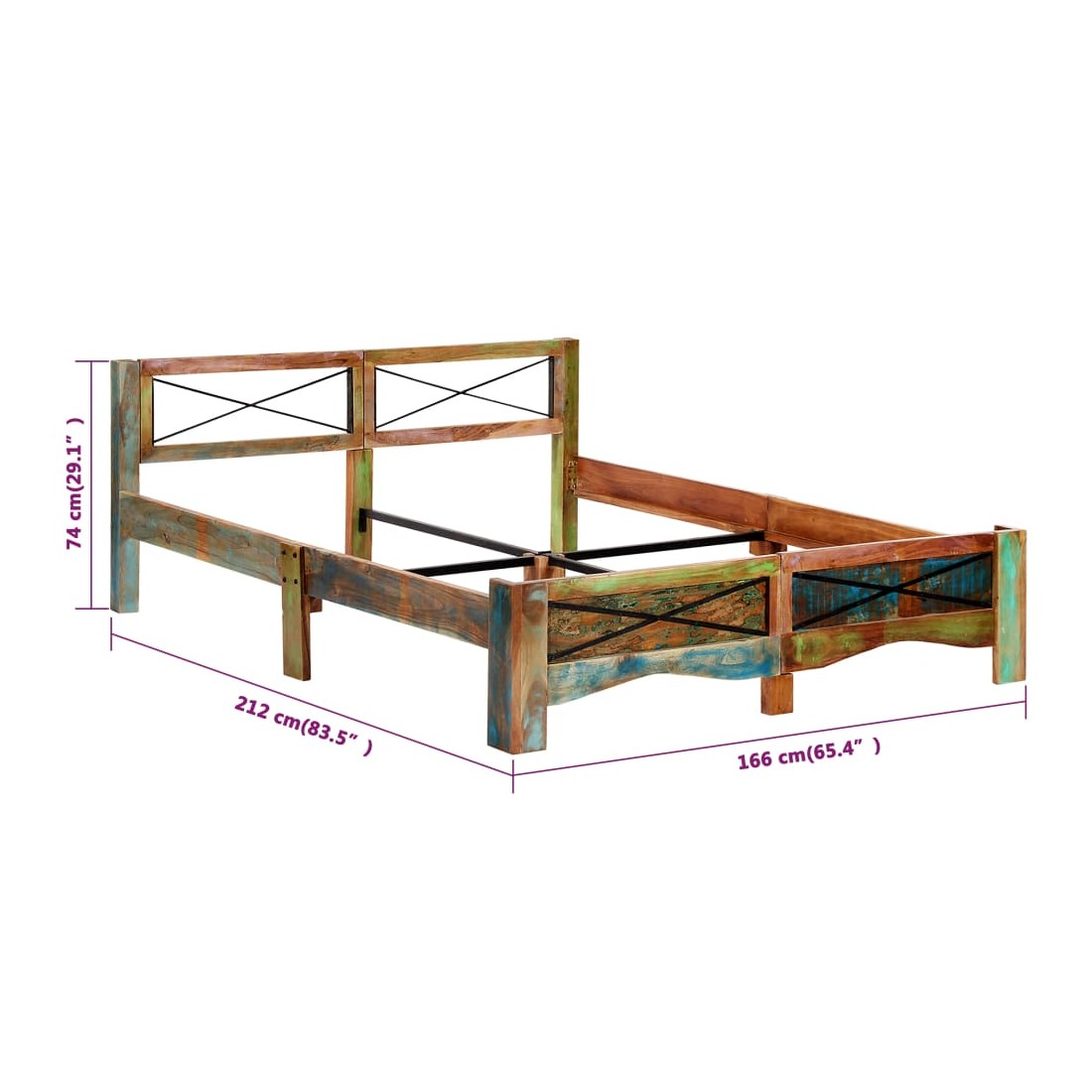 Ce cadre de lit en bois dégage un charme vintage et sera le centre d'attention de votre chambre à coucher. Ce cadre de lit de style antique est fait de bois de récupération massif provenant des solives, des planchers et des poutres de soutien de vieux bâtiments démolis et il peut être composé de différents types de bois comme le pin, le teck, le hêtre, le chêne, le cèdre, le bois de manguier, l'acacia, etc. Cela signifie que le bois de récupération conserve les caractéristiques de ces différents types de bois. Le bois de récupération est déjà vieilli, patiné et séché, donc il ne rétrécit pas et ne se plie pas. En conséquence, ce lit au design élégant est extrêmement stable, durable et attrayant. De plus, l'artisanat exquis et les grains de bois gracieux rendent chaque pièce de meuble distinctive et légèrement différente l'une de l'autre. Veuillez noter que le matelas n'est pas inclus dans la livraison. Remarque importante : les couleurs varient d'une pièce à l'autre, rendant chaque pièce unique. La livraison est aléatoire, garantissant l'exclusivité et l'individualité de votre produit.