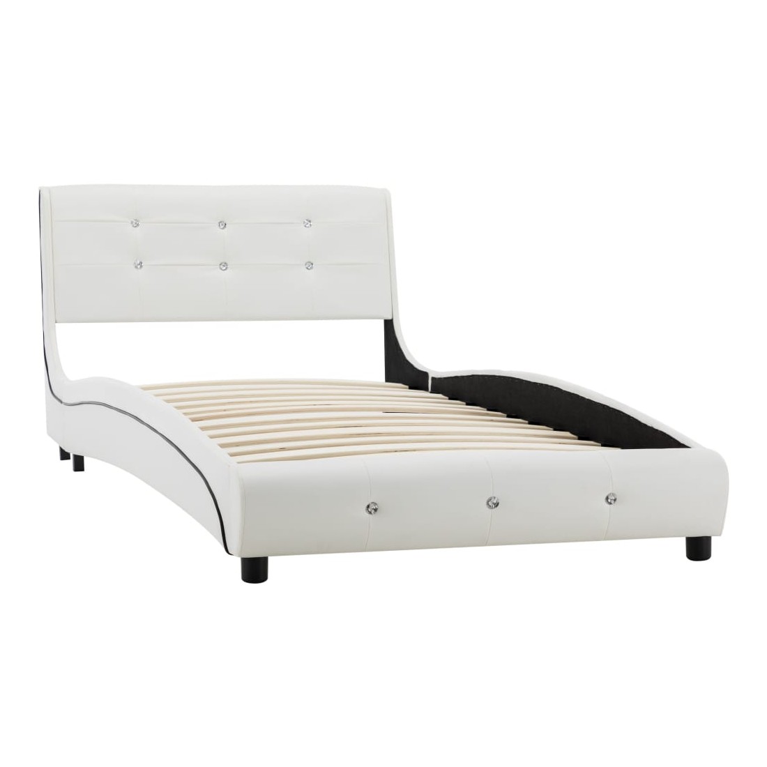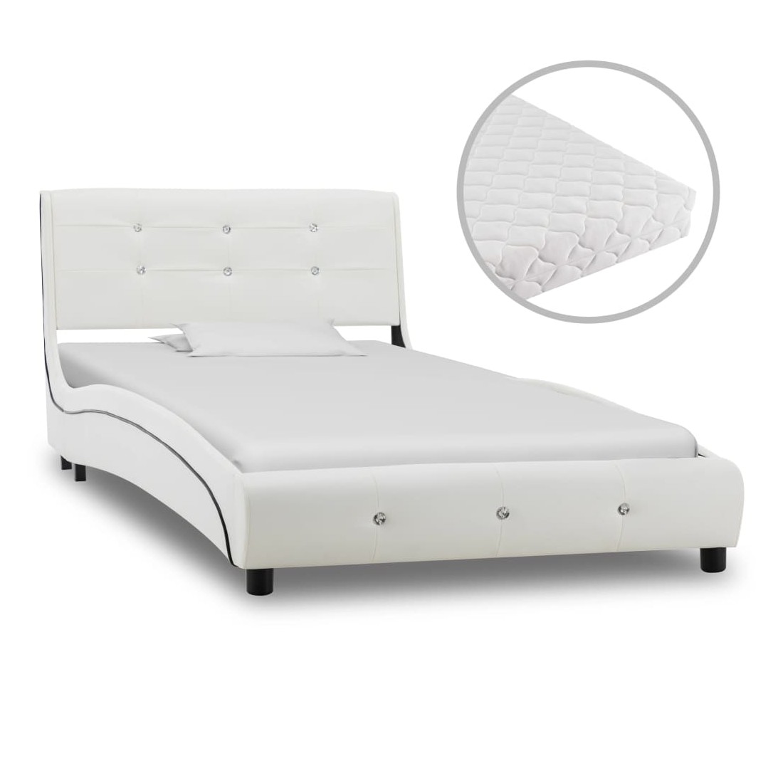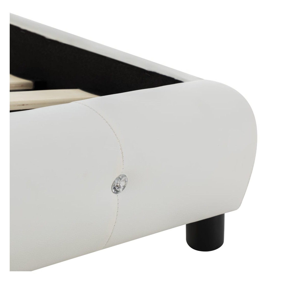 Ce cadre de lit classique deviendra l'attraction principale de votre chambre à coucher. Se distinguant par un design sobre mais élégant, ce cadre de lit ajoute une touche de charme élégant à la décoration de votre chambre à coucher. Fabriqué en fer et en bois, ce cadre de lit est extrêmement robuste et durable. Les pieds en acier enduit de poudre ajoutent une durabilité supplémentaire au lit. De plus, recouvert de similicuir durable, le lit dégage un aspect accueillant et se nettoie facilement. Comportant une épaisseur supplémentaire d'env. 17 cm, le matelas inclus est doux et confortable et a une housse rembourrée et lavable. Il répartit automatiquement votre poids et réduit le stress sur les points de pression de votre corps. Il est fortement recommandé pour soulager les douleurs articulaires, l'insomnie, les maux de dos et les douleurs au cou. La couche supérieure du matelas absorbe l'humidité et offre une bonne isolation thermique. De plus, la housse lavable rend le matelas facile à nettoyer, lui permettant de rester toujours hygiénique. Le matelas est constitué de 3 couches, de haut en bas : housse rembourrée lavable d'1 cm, mousse 30 D de 15 cm, housse rembourrée lavable d'1 cm. Remarque : pour des raisons d'hygiène, le matelas ne peut pas être retourné si l'emballage a été ouvert ou enlevé.