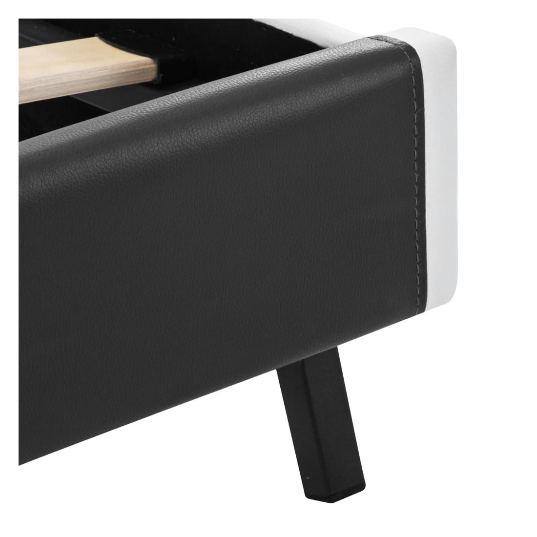 Fabriqué en MDF solide et robuste, ce lit robuste se caractérise par un design simple mais élégant, ainsi que par une construction solide. Les lattes de contreplaqué robustes ainsi que les pieds en acier offrent le soutien nécessaire et sont également confortables. Recouvert de similicuir durable, le lit dégage un look accueillant et est facile à entretenir. Ce lit à plateforme convient à un matelas de 200 x 90 cm. En outre, vous pouvez facilement régler la puissance, la luminosité et les différentes couleurs clignotantes de la bande lumineuse LED avec la télécommande à 24 touches entièrement fonctionnelle incluse pour créer un spectacle de lumière époustouflant. Veuillez noter que la livraison inclut un cadre de lit seulement ; un matelas n'est pas inclus. Le lit est facile à assembler. Vous pouvez chercher le matelas correspondant dans notre boutique. Remarque : ce produit est doté d'un connecteur USB, mais la source d'alimentation certifiée de USB 5V n'est pas incluse.