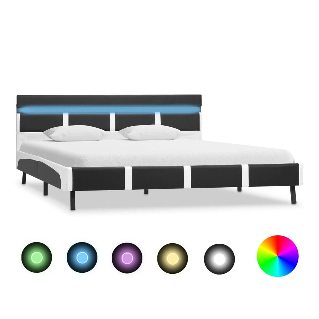 Fabriqué en MDF solide et robuste, ce lit robuste se caractérise par un design simple mais élégant, ainsi que par une construction solide. Les lattes de contreplaqué robustes ainsi que les pieds en acier offrent le soutien nécessaire et sont également confortables. Recouvert de similicuir durable, le lit dégage un look accueillant et est facile à entretenir. Ce lit à plateforme convient à un matelas de 200 x 140 cm. En outre, vous pouvez facilement régler la puissance, la luminosité et les différentes couleurs clignotantes de la bande lumineuse LED avec la télécommande à 24 touches entièrement fonctionnelle incluse pour créer un spectacle de lumière époustouflant. Veuillez noter que la livraison inclut un cadre de lit seulement ; un matelas n'est pas inclus. Le lit est facile à assembler. Vous pouvez chercher le matelas correspondant dans notre boutique. Remarque : ce produit est doté d'un connecteur USB, mais la source d'alimentation certifiée de USB 5V n'est pas incluse.