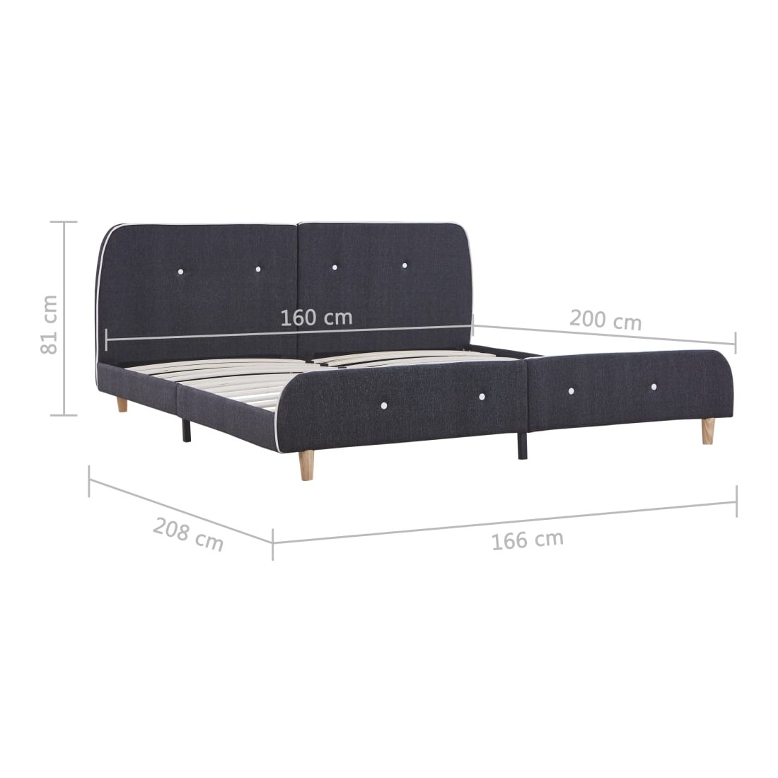 Ce cadre de lit classique deviendra l'attraction principale de votre chambre à coucher. Se distinguant par un design sobre mais élégant, ce cadre de lit ajoute une touche de charme élégant à la décoration de votre chambre à coucher. Fabriqué en bois et en fer, ce cadre de lit est extrêmement robuste et durable. Les pieds en bois ajoutent de la durabilité supplémentaire au lit. De plus, recouvert de tissu durable, le lit dégage un look accueillant et se nettoie facilement. Ce cadre de lit convient à un matelas de 160 x 200 cm. Veuillez noter que la livraison inclut un cadre de lit seulement ; un matelas n'est pas inclus. Le lit est facile à assembler. Vous pouvez chercher le matelas correspondant dans notre boutique.