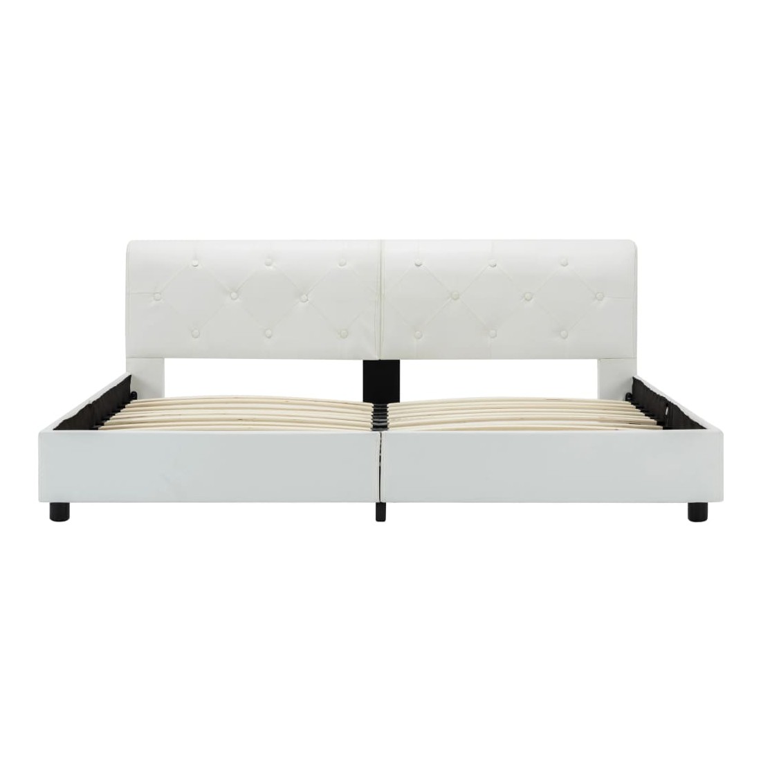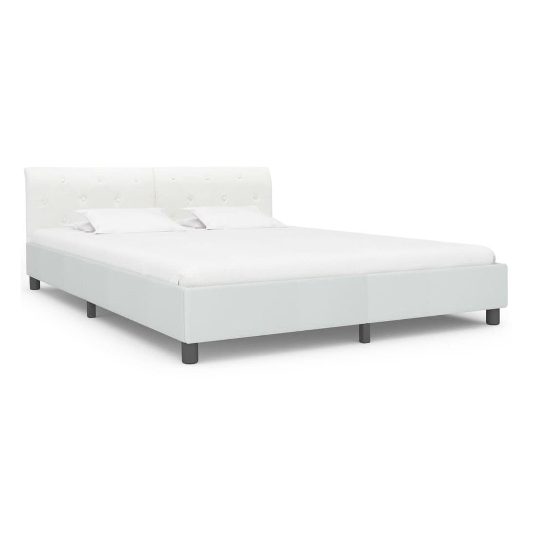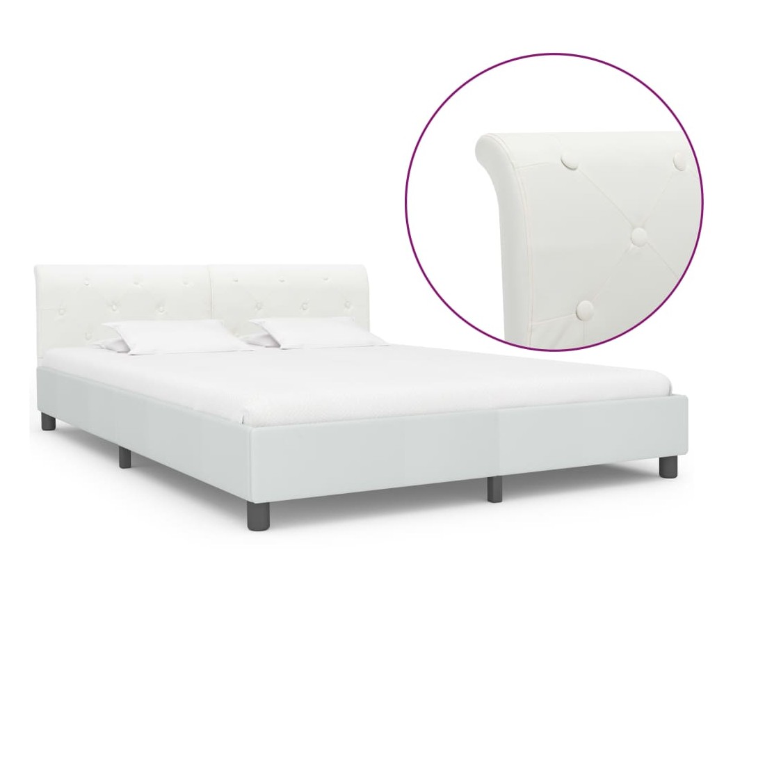Ce cadre de lit classique deviendra l'attraction principale de votre chambre à coucher. Se distinguant par un design sobre mais élégant, ce cadre de lit ajoute une touche de charme élégant à la décoration de votre chambre à coucher. Fabriqué en bois et en MDF, ce cadre de lit est extrêmement robuste et durable. Les pieds en acier enduit de poudre ajoutent de la durabilité au lit. De plus, recouvert de similicuir durable, le lit dégage un look accueillant et se nettoie facilement. Ce cadre de lit convient à un matelas de 160 x 200 cm. Veuillez noter que la livraison inclut un cadre de lit seulement ; un matelas n'est pas inclus. Le lit est facile à assembler. Vous pouvez chercher le matelas correspondant dans notre boutique.