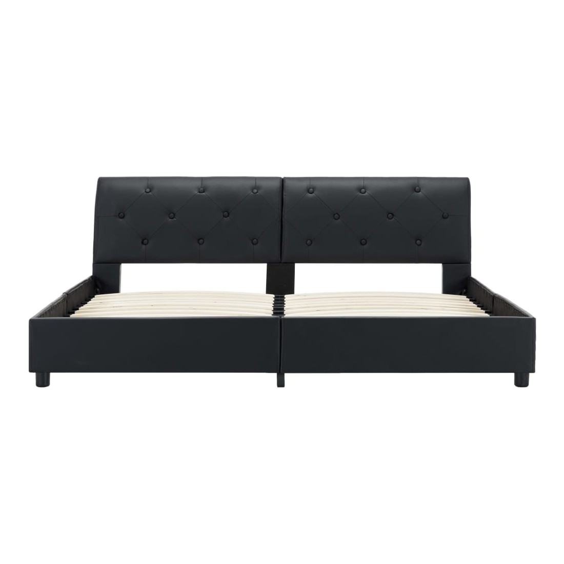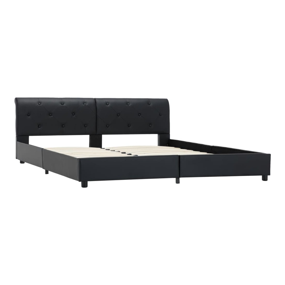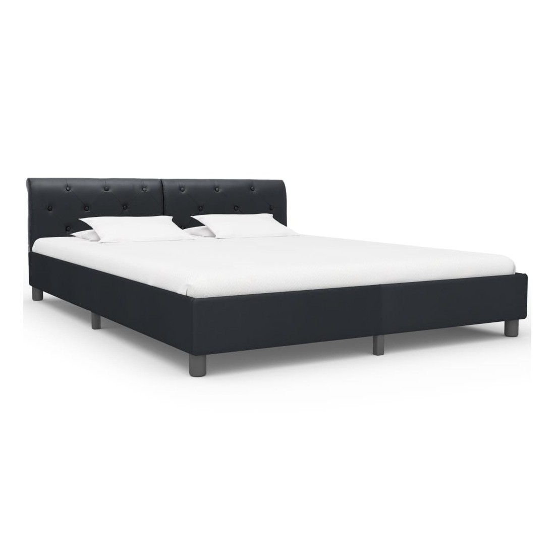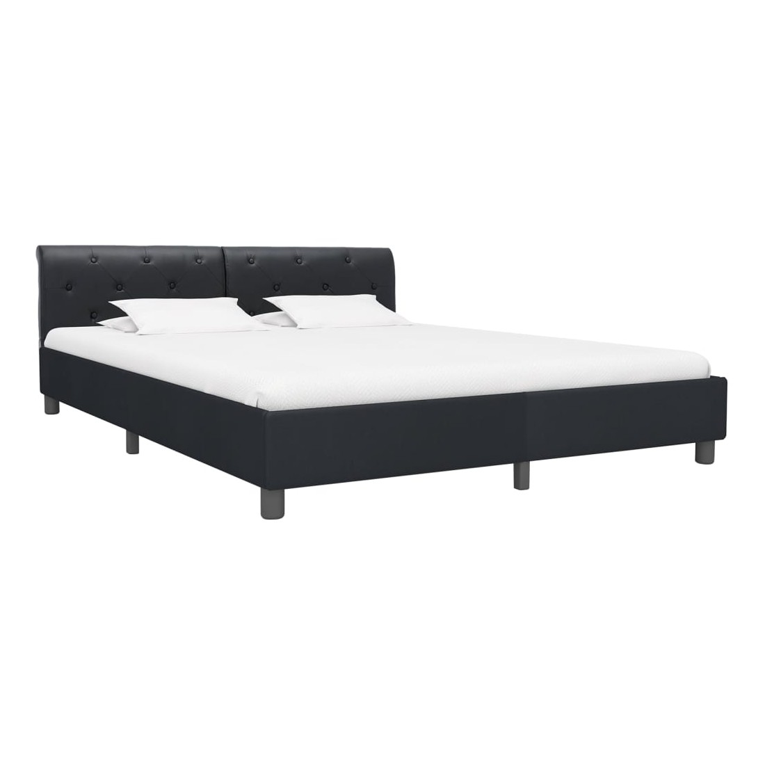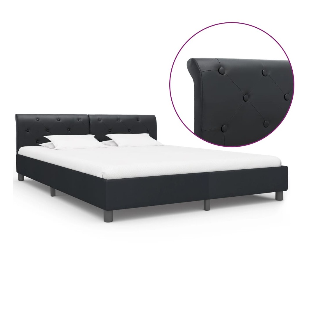 Ce cadre de lit classique deviendra l'attraction principale de votre chambre à coucher. Se distinguant par un design sobre mais élégant, ce cadre de lit ajoute une touche de charme élégant à la décoration de votre chambre à coucher. Fabriqué en bois et en MDF, ce cadre de lit est extrêmement robuste et durable. Les pieds en acier enduit de poudre ajoutent de la durabilité au lit. De plus, recouvert de similicuir durable, le lit dégage un look accueillant et se nettoie facilement. Ce cadre de lit convient à un matelas de 160 x 200 cm. Veuillez noter que la livraison inclut un cadre de lit seulement ; un matelas n'est pas inclus. Le lit est facile à assembler. Vous pouvez chercher le matelas correspondant dans notre boutique.