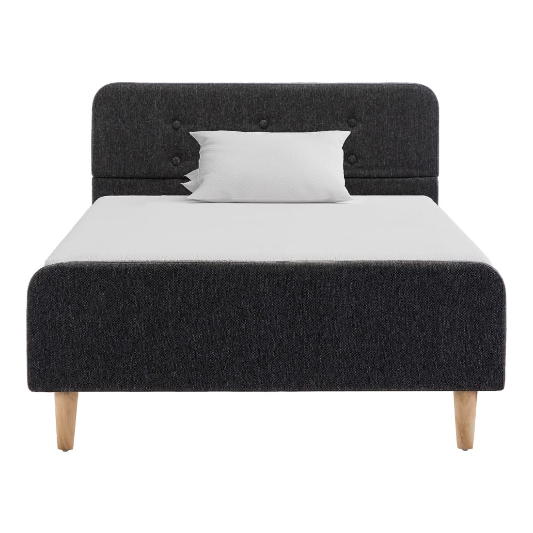 Ce cadre de lit classique deviendra l'attraction principale de votre chambre à coucher. Se distinguant par un design sobre mais élégant, ce cadre de lit ajoute une touche de charme élégant à la décoration de votre chambre à coucher. Fabriqué en bois et en MDF, ce cadre de lit est extrêmement robuste et durable. Les pieds en acier enduit de poudre ajoutent de la durabilité au lit. De plus, recouvert de toile de jute durable, le lit dégage un look accueillant et se nettoie facilement. Ce cadre de lit convient à un matelas de 90 x 200 cm. Veuillez noter que la livraison inclut un cadre de lit seulement ; un matelas n'est pas inclus. Le lit est facile à assembler. Vous pouvez chercher le matelas correspondant dans notre boutique.