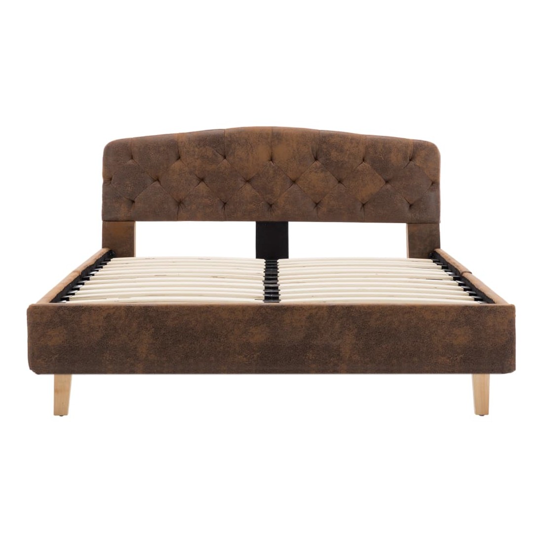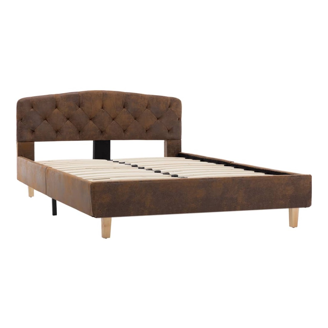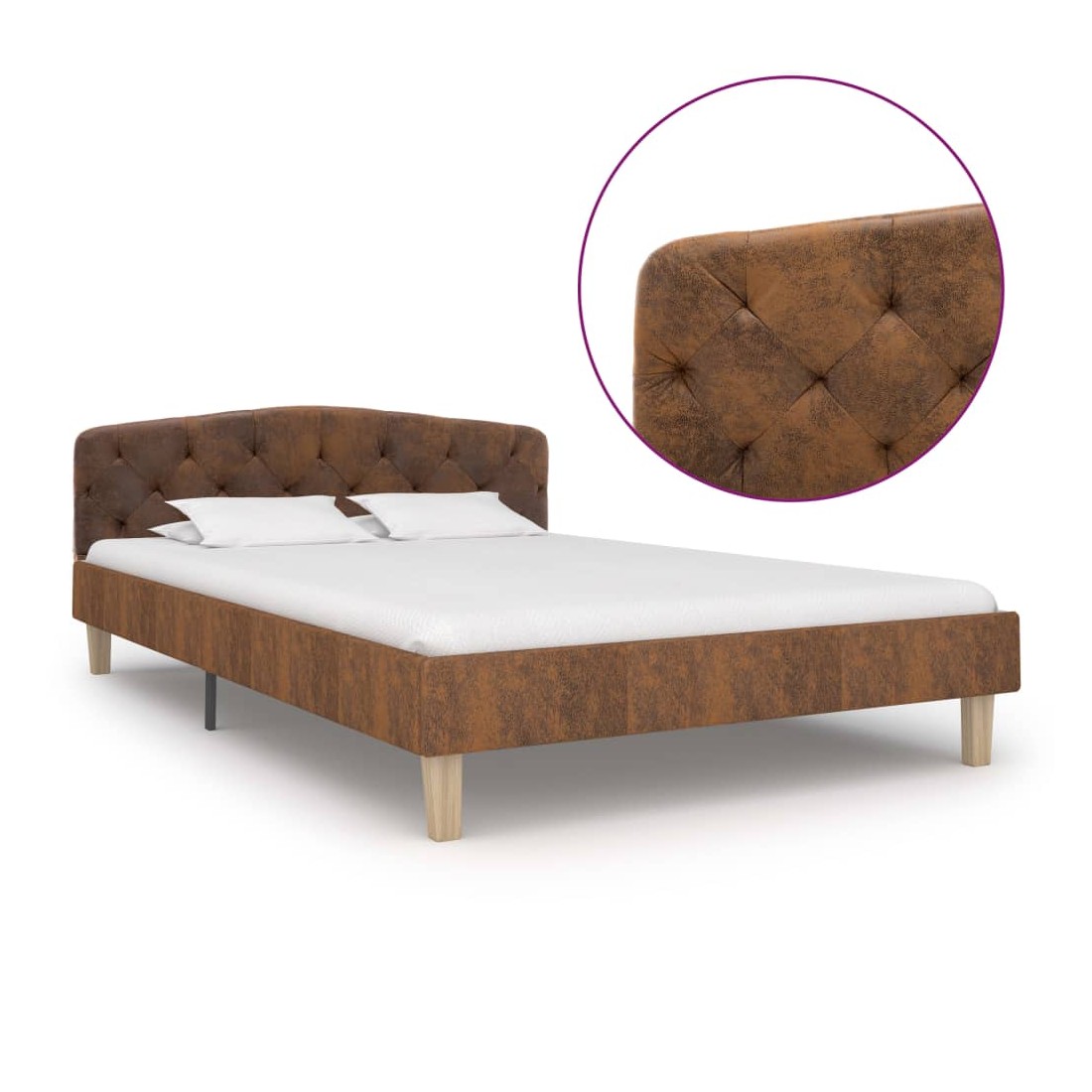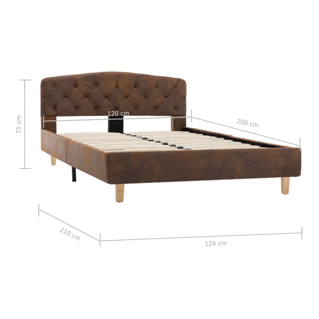 Ce cadre de lit classique deviendra l'attraction principale de votre chambre à coucher. Se distinguant par un design sobre mais élégant, ce cadre de lit ajoute une touche de charme élégant à la décoration de votre chambre à coucher. Fabriqué en bois et en MDF, ce cadre de lit est extrêmement robuste et durable. Les pieds en acier enduit de poudre ajoutent de la durabilité au lit. De plus, recouvert de similicuir daim durable, le lit dégage un look accueillant et se nettoie facilement. Ce cadre de lit convient à un matelas de 120 x 200 cm. Veuillez noter que la livraison inclut un cadre de lit seulement ; un matelas n'est pas inclus. Le lit est facile à assembler. Vous pouvez chercher le matelas correspondant dans notre boutique.