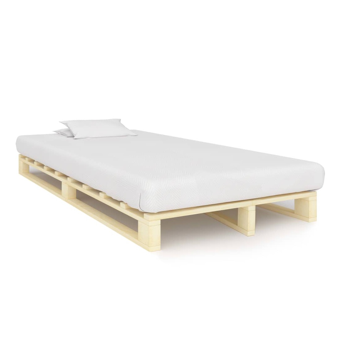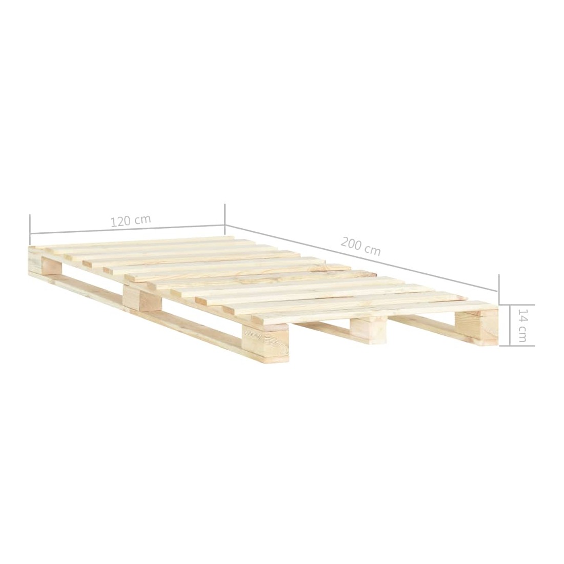 Notre cadre de lit de palette classique deviendra le point central de toute chambre à coucher. Avec son design intemporel, notre cadre de lit en bois massif sera un supplément pratique et décoratif à votre intérieur. Fabriqué en bois de pin massif, ce cadre de lit est solide et durable. Les lattes robustes offrent le soutien nécessaire et sont très confortables. Ce cadre de lit convient à un matelas de 120 x 200 cm. Veuillez noter que la livraison inclut un cadre de lit seulement ; un matelas n'est pas inclus. Le lit est facile à assembler.