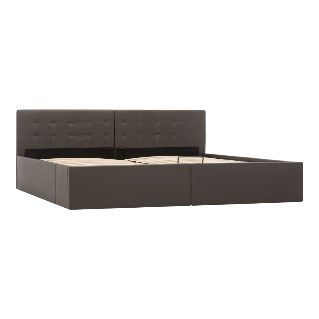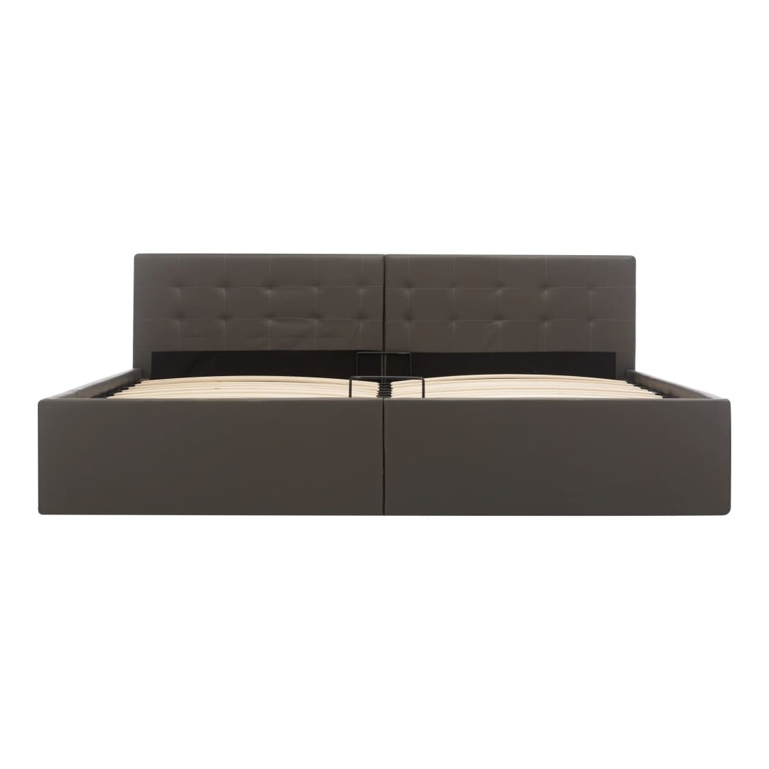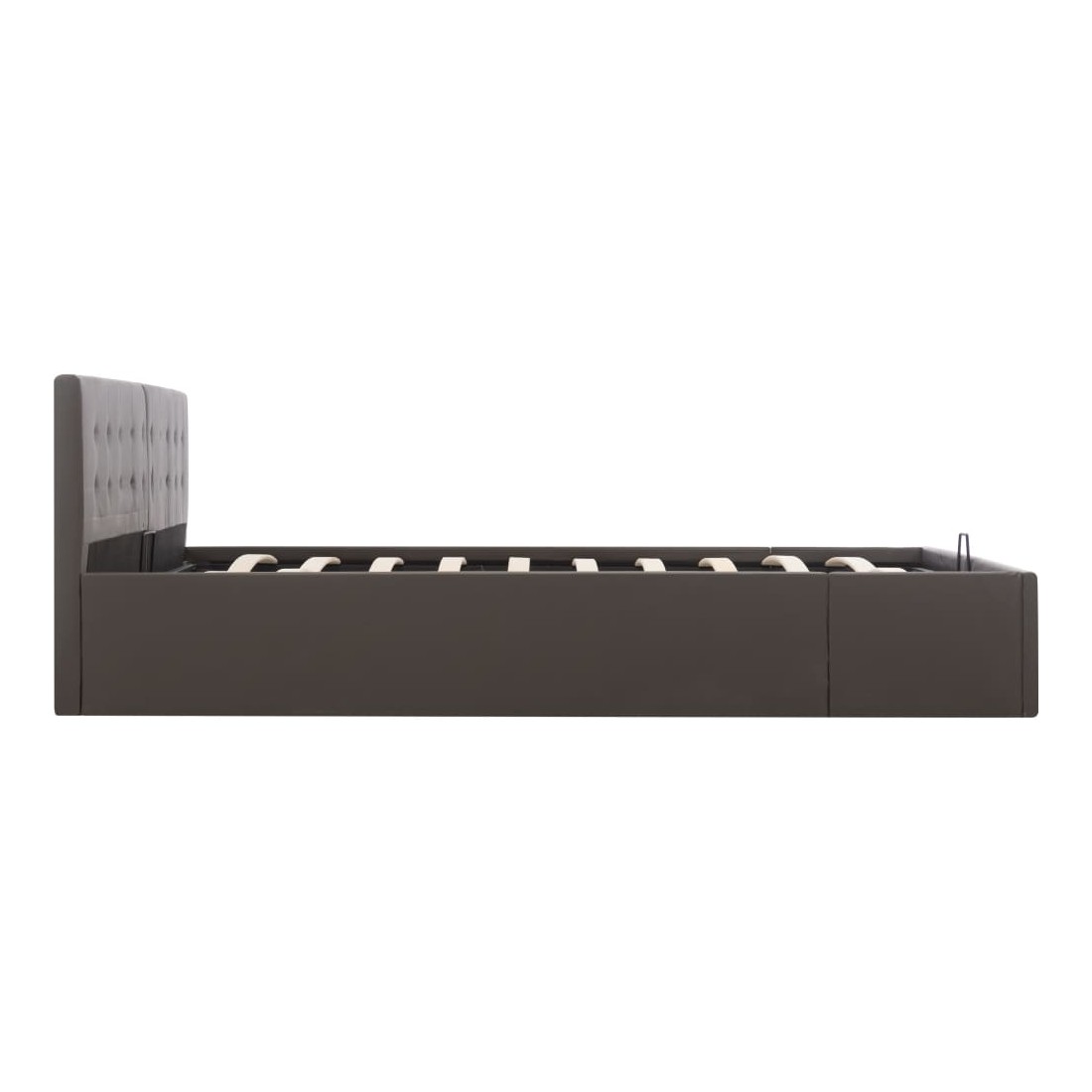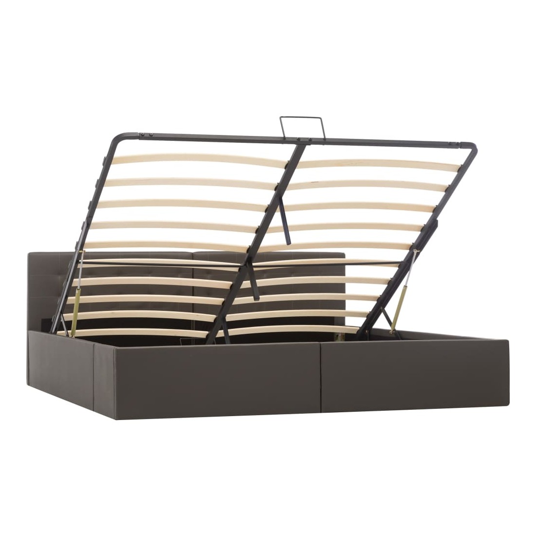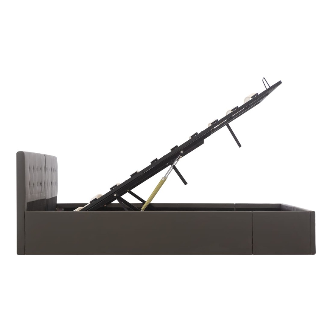 Ajoutez instantanément un goût moderne impressionnant à votre chambre à coucher avec cet élégant cadre de lit ! Longue durée de vie et entretien facile : le similicuir est un matériau très durable qui résiste aux taches, ce qui le rend facile à nettoyer avec un chiffon humide. Sa surface lisse lui confère un aspect élégant qui ressemble à celui du cuir véritable.Matériau robuste : le cadre du lit est doté d'un cadre en acier robuste et de bois d'ingénierie, garantissant robustesse, résistance à la corrosion et durabilité. De plus, sa conception légère garantit une utilisation confortable, même pendant de longues périodes.Fonction de rangement peu encombrante : maximisez l'espace sous le lit pour un rangement caché, idéal pour organiser proprement les vêtements, la literie, etc. Le mécanisme de levage hydraulique à air assure un accès facile.Lattes pour un soutien optimal : le cadre de lit est complété par des lattes pour offrir un soutien et une respirabilité essentiels à votre matelas.Excellent soutien : la tête de lit du sommier vous offre un excellent soutien du dos lorsque vous vous asseyez dans votre lit pour lire ou regarder la télévision. Bon à savoir :Un matelas n'est pas inclus avec ce lit. Nous offrons une sélection variée de matelas. Vous pouvez consulter notre boutique pour trouver un matelas assorti.