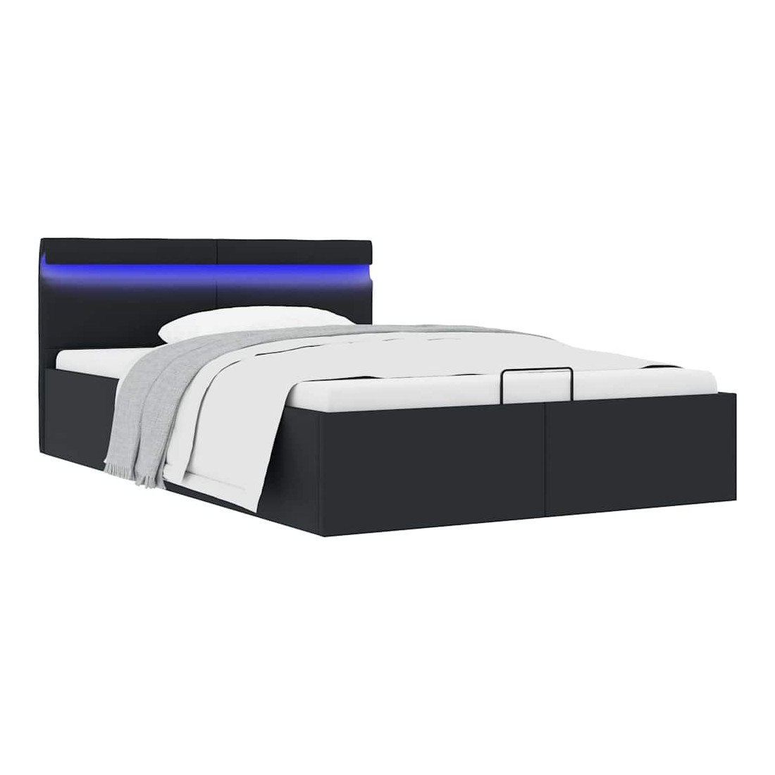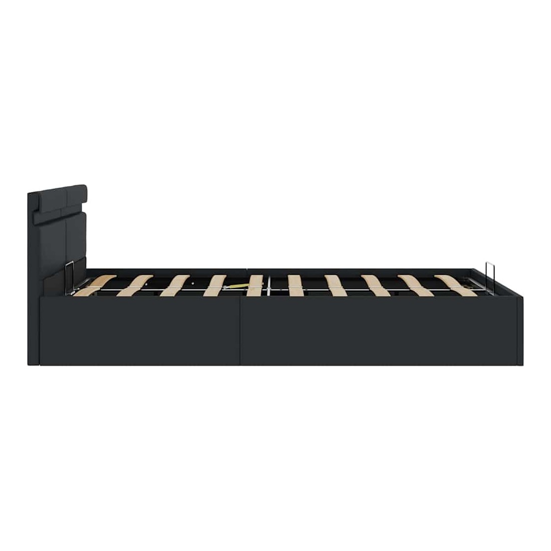 Ajoutez instantanément un goût moderne impressionnant à votre chambre à coucher grâce à notre cadre de lit en similicuir hydraulique ! Ce lit double se caractérise par un design simple mais élégant, ainsi que par une construction solide, car il est fabriqué en MDF robuste et résistant. Ce lit rembourré transforme l'espace inutilisé sous le matelas en espace de rangement, avec suffisamment d'espace pour ranger les vêtements, les draps, les couvertures, etc. Le mécanisme de levage à gaz hydraulique facilite le soulèvement du matelas. Le sommier à lattes restera droit une fois soulevé pour vous laisser les deux mains libres d'enlever ou de stocker des articles en dessous. Le cadre en acier enduit de poudre et les lattes en contreplaqué ajoutent à la robustesse et à la durabilité du lit. Rembourré de similicuir brillant, ce lit semble accueillant et facile à entretenir. Ce meuble de chambre à coucher convient à un matelas de 140 x 200 cm. Ce lit est équipé de lumières LED qui peuvent être facilement réglées pour créer un spectacle lumineux personnalisé. Vous pouvez personnaliser les modes, les couleurs et la luminosité pour améliorer l'ambiance de votre espace intérieur. Ce produit est facile à assembler. Veuillez noter que la livraison inclut un cadre de lit seulement ; un matelas n'est pas inclus. Vous pouvez chercher le matelas correspondant dans notre boutique. Remarque : ce produit est doté d'un connecteur USB, mais la source d'alimentation certifiée de USB 5V n'est pas incluse.