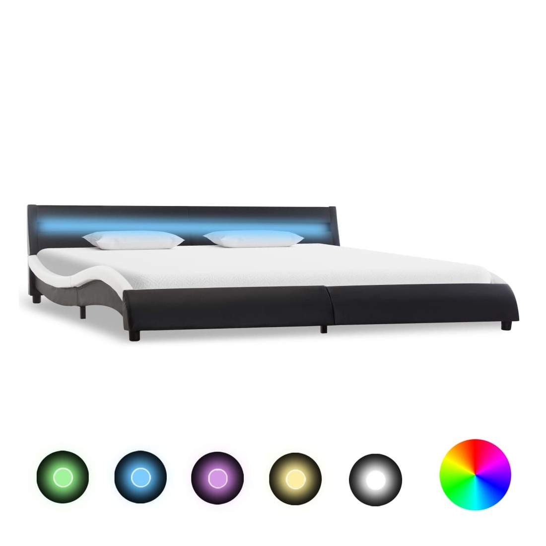 Cadre de lit avec LED Noir et blanc Similicuir 180 x 200 cm
