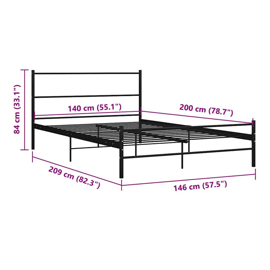 Ajoutez instantanément un goût élégant et classique à votre chambre à coucher grâce à notre cadre de lit en métal ! Structure robuste : le cadre en métal du cadre de lit ajoute un style industriel à votre intérieur tout en garantissant robustesse, stabilité et longévité.Lattes et pieds en métal : le cadre de lit en métal est équipé de lattes en métal et de pieds centraux pour offrir à votre matelas le soutien et la respirabilité dont il a tant besoin.Espace de rangement supplémentaire : pour votre confort, le lit d'appoint dispose également d'un espace supplémentaire en dessous pour ranger vos boîtes de rangement à l'abri des regards.Excellent soutien : la tête de lit du sommier vous offre un excellent soutien du dos lorsque vous vous asseyez dans votre lit pour lire ou regarder la télévision.Pieds en bois : ce lit est soutenu par des pieds robustes, ce qui garantit sa stabilité, sa sécurité et sa fermeté. Bon à savoir :Un matelas n'est pas inclus avec ce lit. Nous offrons une sélection variée de matelas. Vous pouvez consulter notre boutique pour trouver un matelas assorti.