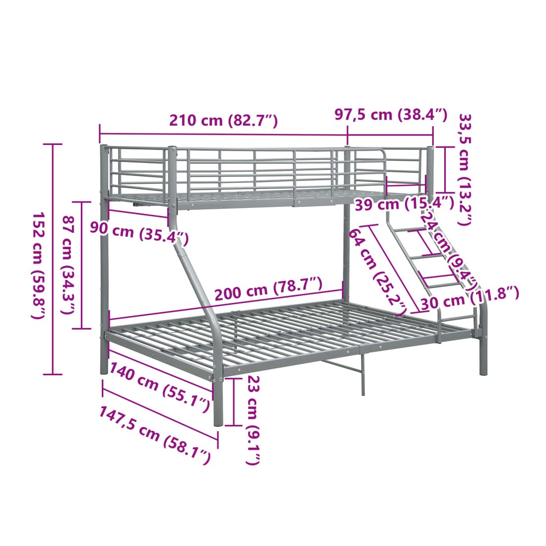 Cadre de lit superposé sans matelas gris 140x200 cm/90x200 cm