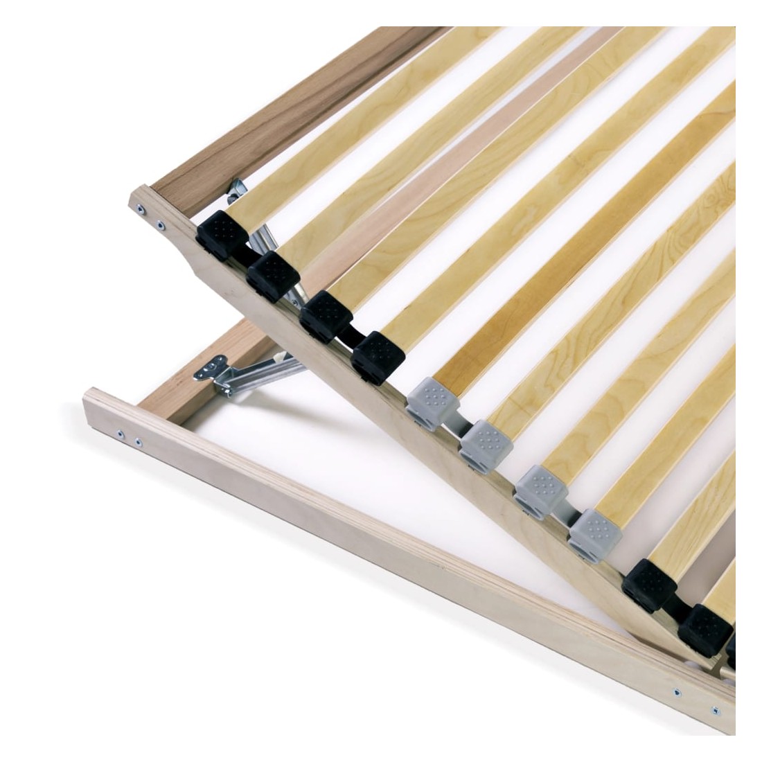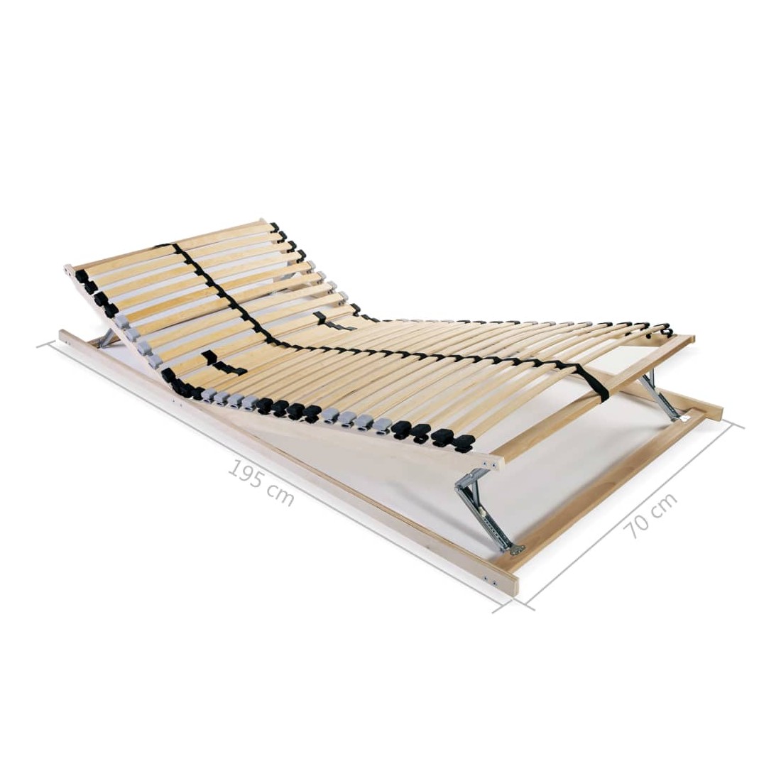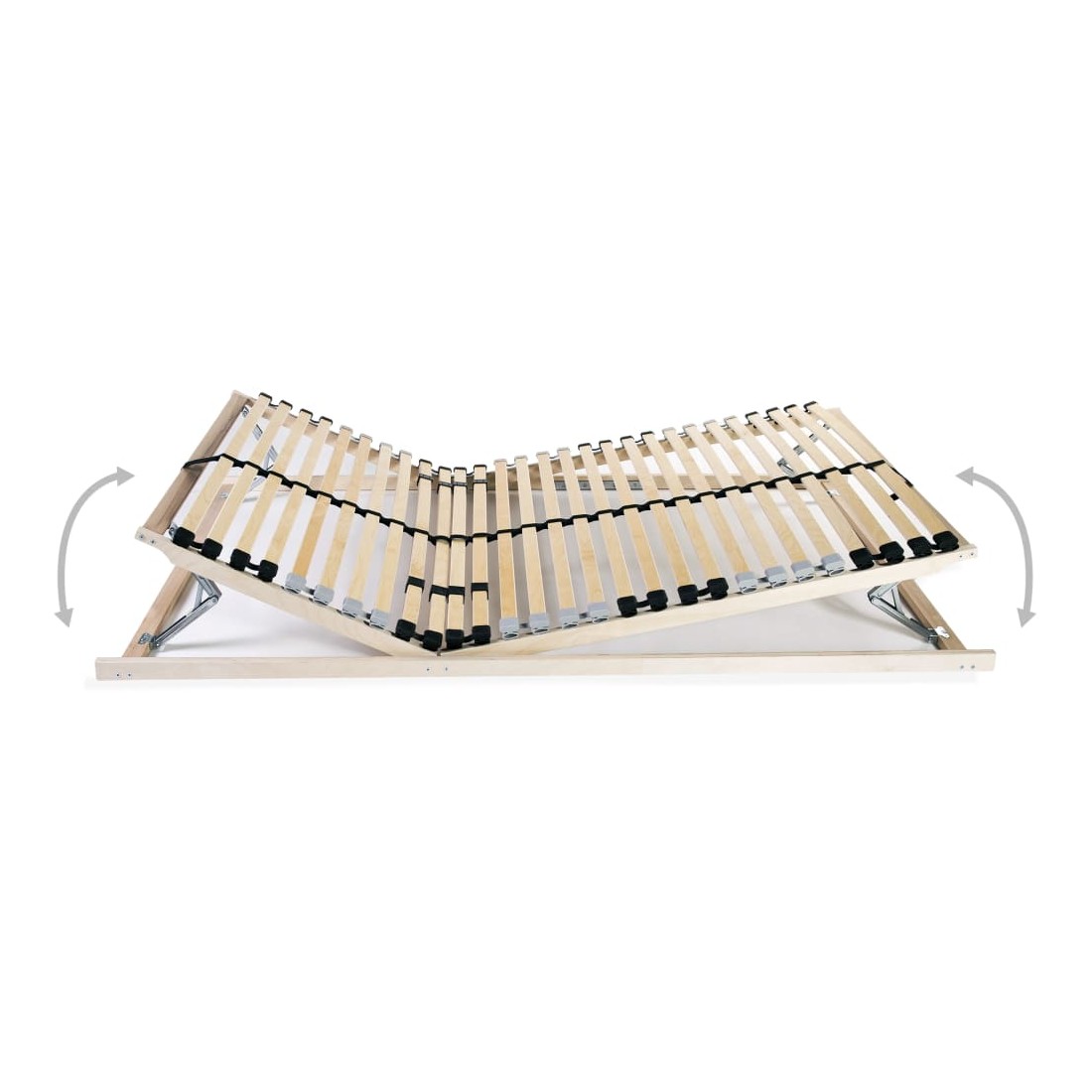 Notre sommier à lattes confortable vous fera aimer encore davantage votre lit ! Avec un cadre en hêtre massif et des lattes en bouleau, le sommier est robuste et durable. Les 7 zones de confort offrent un soutien optimal à votre corps. Les deux extrémités des lattes sont maintenues en place par des capuchons en caoutchouc SBS pour une meilleure stabilité de l'ensemble de la structure. Grâce aux 4 lattes doubles réglables dans la zone centrale, la fermeté de la base peut être ajustée en fonction de vos besoins. La section de la tête et celle des pieds sont réglables pour que vous puissiez lire ou regarder la télévision confortablement. Le produit est facile à assembler. Veuillez noter que la livraison comprend uniquement 2 sommiers à lattes ; des matelas et des cadres de lit ne sont pas inclus. Bon à savoir : l'assemblage est requis en raison des restrictions d'expédition limitant la taille du paquet à un maximum de 120 cm.