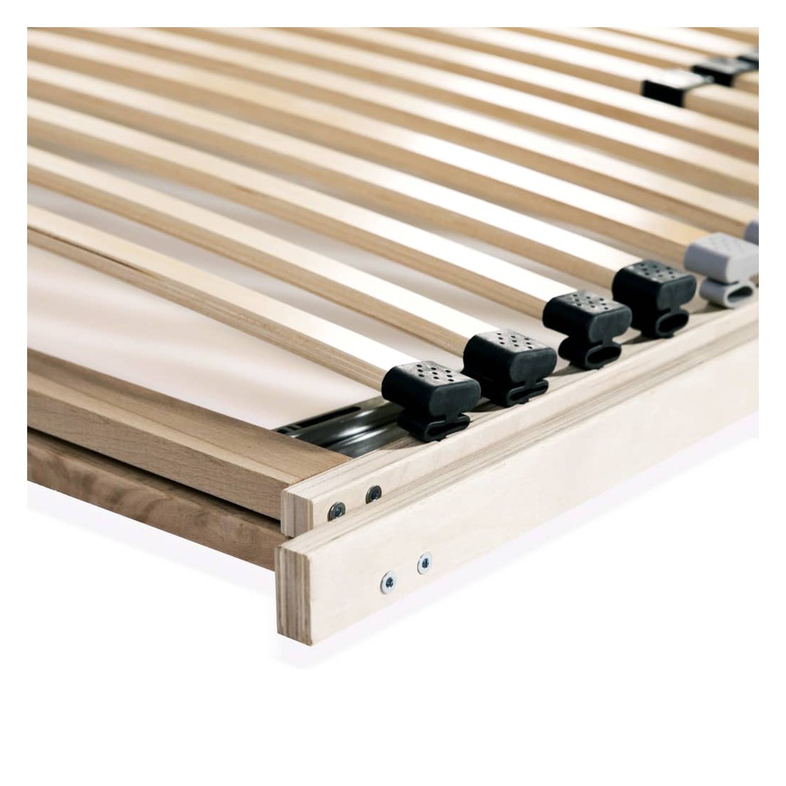• Avec 28 lattes (4 lattes doubles à fermeté réglable)