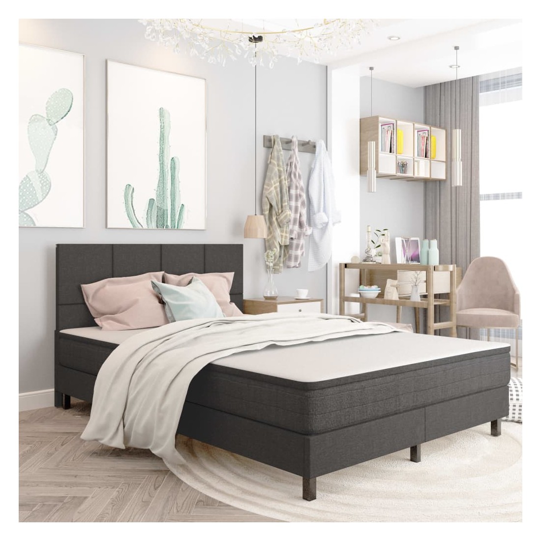 Ce sommier tapissier ajoute une touche de charme élégant à la décoration de votre chambre à coucher avec un design sobre. Le cadre de lit, en MDF et en métal, est extrêmement robuste et durable. Rembourré d'un tissu durable et résistant à l'usure, le lit dégage un look accueillant et il est facile à nettoyer. Doté d'une épaisseur supplémentaire d'env. 20 cm, le matelas à dessus de couette avec sommiers amortisseurs vous assure une bonne nuit de sommeil. Il est fait de mousse spécialement conçue avec des couches pour soulager les points de pression. La conception du ressort interne comporte des ressorts supplémentaires qui offrent un soutien optimal. C'est également une excellente solution pour les personnes lourdes et les personnes souffrant de transpiration excessive. Le matelas retrouve sa forme après pression. De plus, le surmatelas peut être enlevé facilement et lavée en ouvrant la fermeture éclair. Ce produit est facile à assembler. Remarque : pour des raisons d'hygiène, le matelas et le surmatelas ne peuvent être retournée si l'emballage est retiré ou ouvert.