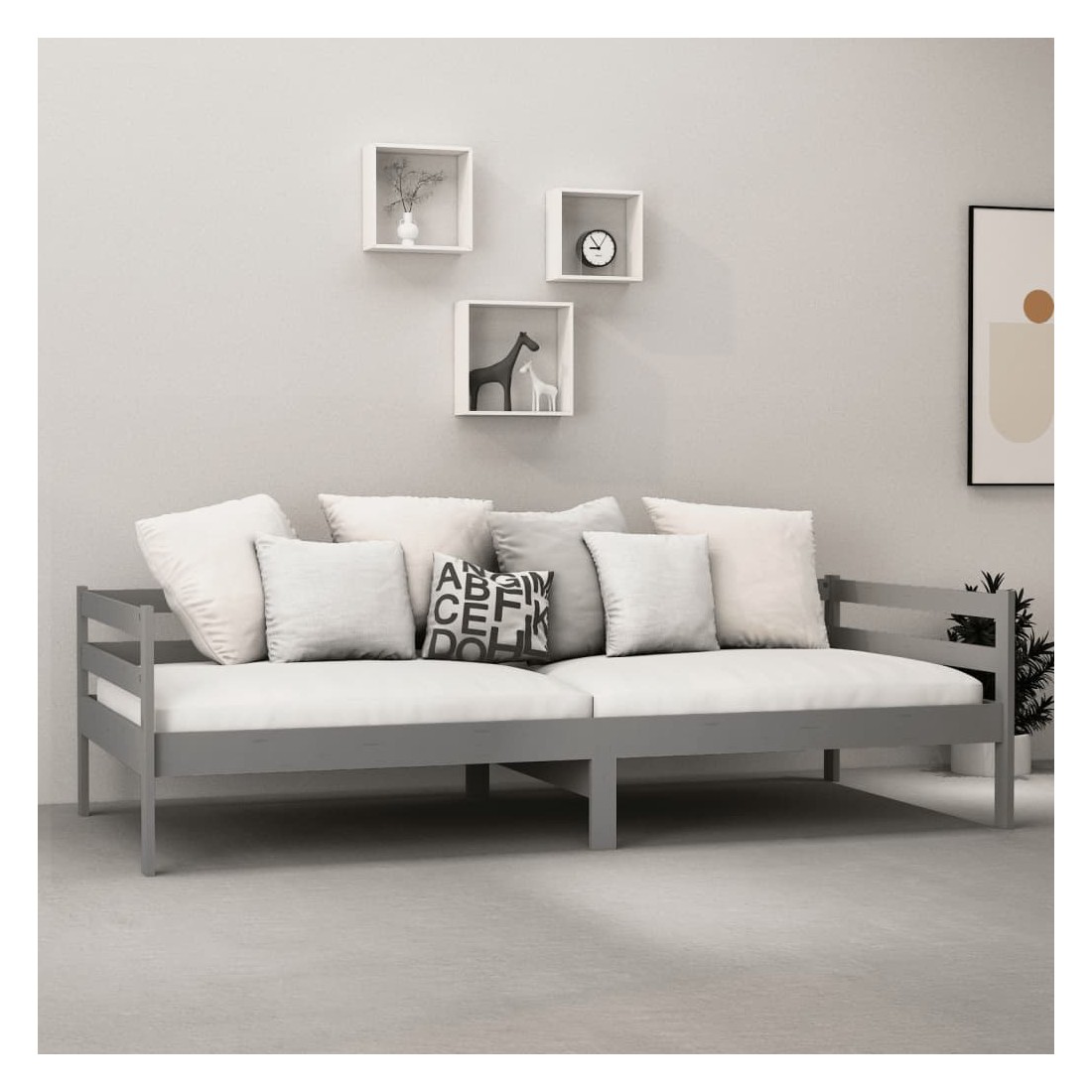 Ce lit en bois est une solution parfaite pour accueillir des invités pour la nuit tout en offrant un espace confortable pour s'asseoir pendant la journée. Le canapé-lit est fait de bois de pin massif, ce qui le rend robuste et stable. Les lattes robustes offrent également le soutien et le confort nécessaires. Vous pouvez toujours profiter d'une bonne nuit de sommeil sur le lit avec un matelas ultra-doux ! Il offre une expérience de sommeil calme et protège également votre santé vertébrale. Nous vous recommandons d'aérer régulièrement le matelas pour prolonger sa durée de vie. Le lit en bois multifonctionnel peut être utilisé comme un canapé pendant la journée, ou comme un lit pendant la nuit pour offrir une solution rapide pour accueillir des invités pour la nuit. Ce canapé-lit pratique saura attirer tous les regards, où qu'il sera placé ! Remarque importante : vous ne pouvez pas retourner le matelas pour des raisons d'hygiène si la housse de matelas a été ouverte ou retirée.