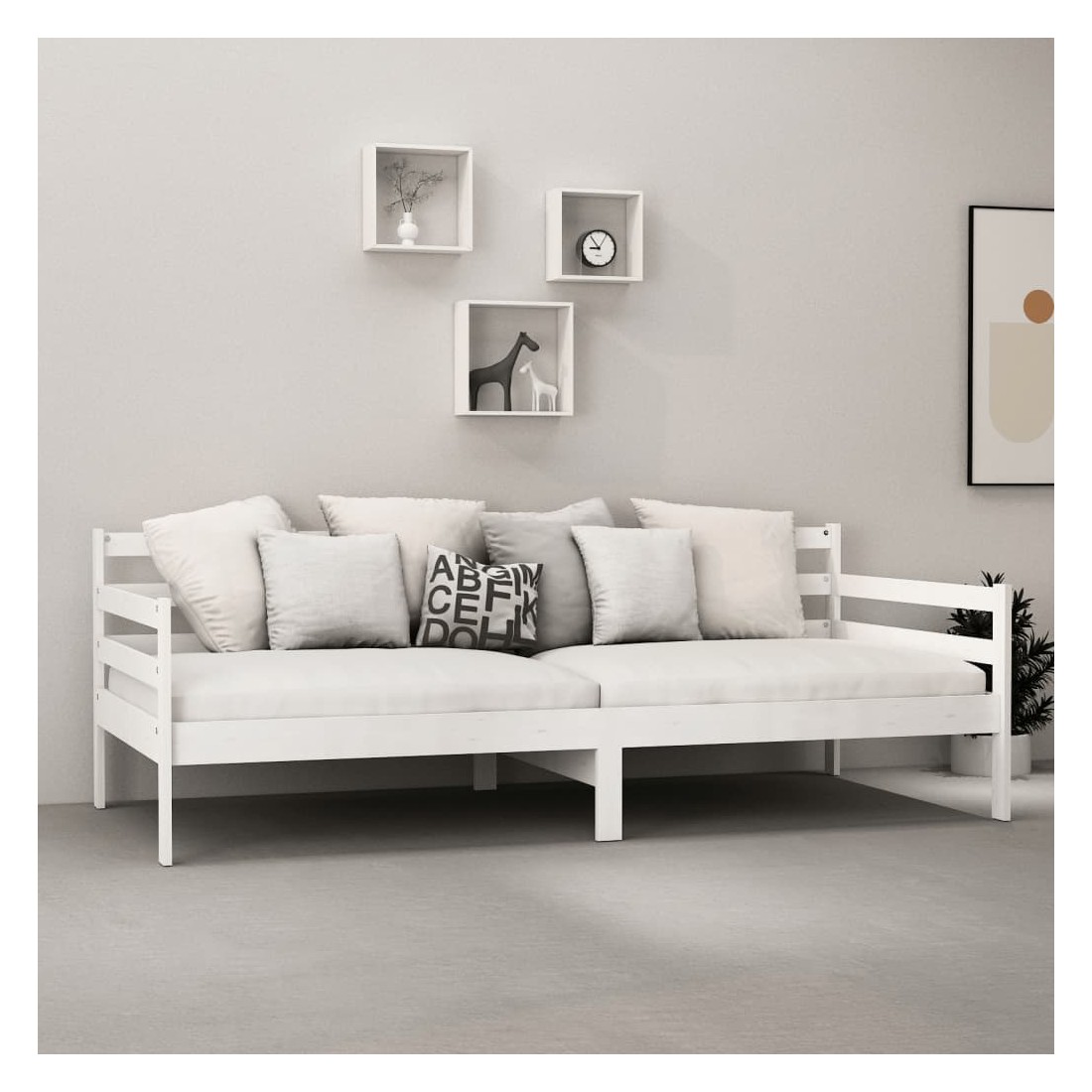 Ce lit en bois est une solution parfaite pour accueillir des invités pour la nuit tout en offrant un espace confortable pour s'asseoir pendant la journée. Le canapé-lit est fait de bois de pin massif, ce qui le rend robuste et stable. Les lattes robustes offrent également le soutien et le confort nécessaires. Vous pouvez toujours profiter d'une bonne nuit de sommeil sur le lit avec un matelas ultra-doux ! Il offre une expérience de sommeil calme et protège également votre santé vertébrale. Nous vous recommandons d'aérer régulièrement le matelas pour prolonger sa durée de vie. Le lit en bois multifonctionnel peut être utilisé comme un canapé pendant la journée, ou comme un lit pendant la nuit pour offrir une solution rapide pour accueillir des invités pour la nuit. Ce canapé-lit pratique saura attirer tous les regards, où qu'il sera placé ! Remarque importante : vous ne pouvez pas retourner le matelas pour des raisons d'hygiène si la housse de matelas a été ouverte ou retirée.
