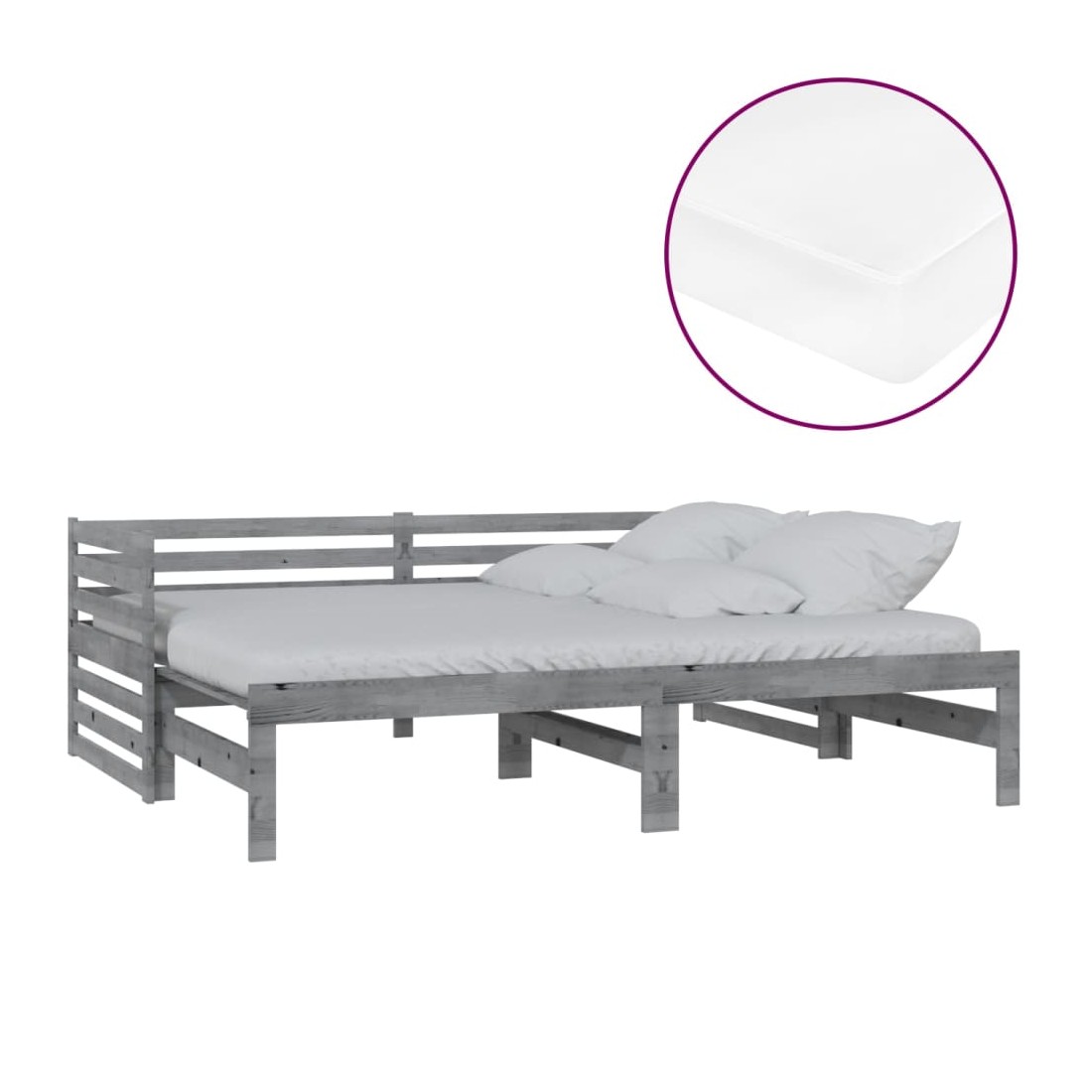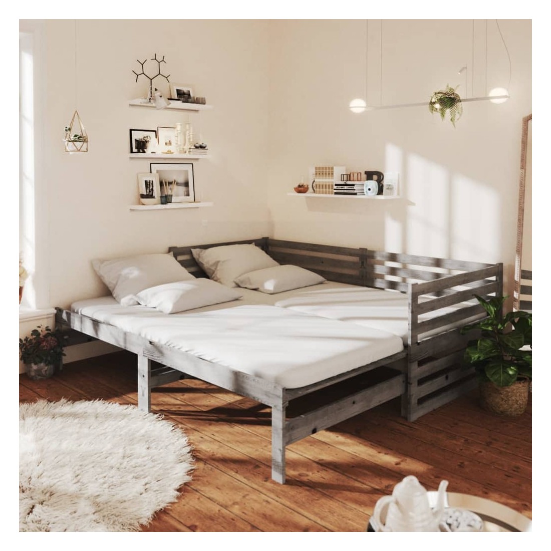 Lit coulissant 2x(90x200) cm Gris Bois de pin massif