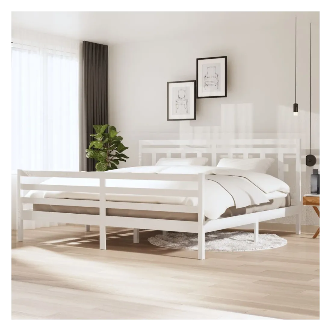 Cadre de lit sans matelas blanc bois massif 200x200 cm