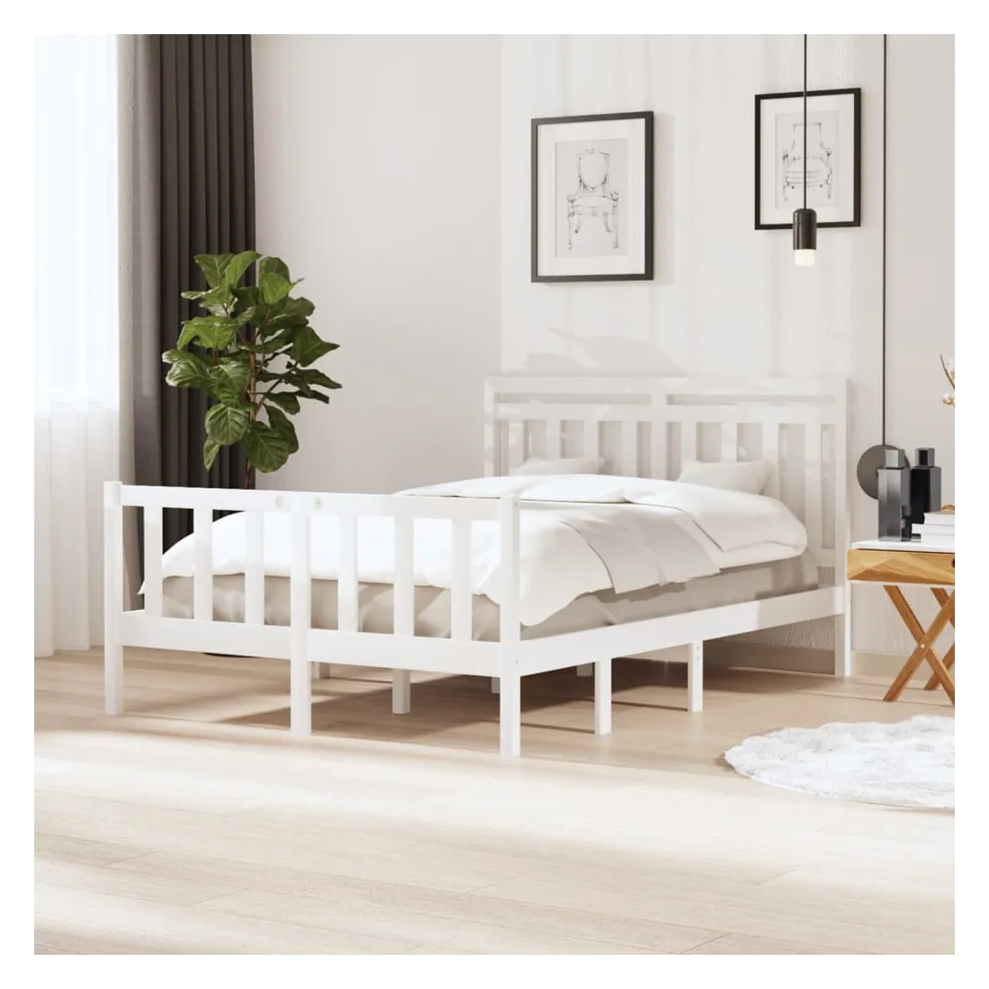 Avec un design simple mais intemporel, ce cadre de lit sera un supplément vraiment pratique et décoratif à votre chambre à coucher. Matériau de première qualité : le bois de pin massif est un matériau naturel magnifique. Le bois de pin a un grain droit et les nœuds donnent au matériau son aspect caractéristique et rustique.Cadre robuste et stable : le cadre en bois assure robustesse et stabilité. Les lattes en pin massif apportent un soutien supplémentaire à votre lit. Il prolonge la durée de vie de votre matelas en absorbant la majeure partie du stress et du poids sur le lit.Design accrocheur : la conception de la tête et du pied de lit est à la fois décorative et pratique. Il ajoute un style et un confort uniques. Bon à savoir :Le matelas n'est pas inclus. Vous pouvez consulter notre boutique pour trouver les matelas assortis.Certaines pièces de tête de lit sont emballées dans les cartons du cadre de lit en raison du manque d’espace.Ce cadre de lit convient à un matelas mesurant 135 x 190 cm (double).