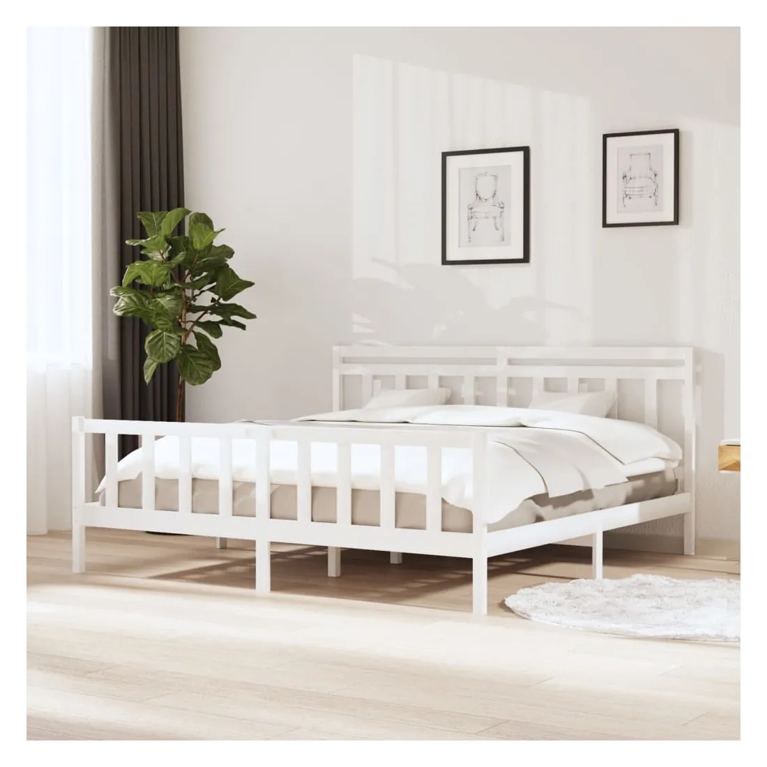 Cadre de lit sans matelas blanc bois massif 200x200 cm