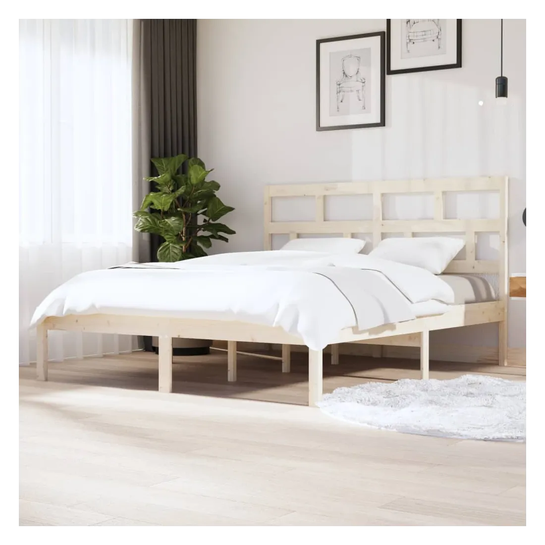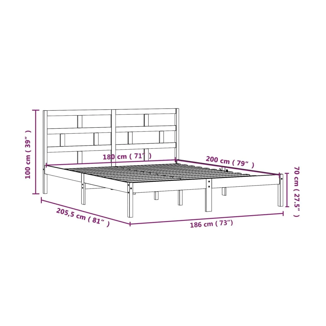 Prenez le chemin moderne vers votre chambre à coucher cool avec ce cadre de lit en bois ! Il constitue un supplément pratique et décoratif à votre intérieur. Matériau de première qualité : le bois de pin massif est un matériau naturel magnifique. Le bois de pin a un grain droit et les nœuds donnent au matériau son aspect caractéristique et rustique.Lattes robustes : les lattes de contreplaqué assurent une bonne répartition du poids, garantissant que le matelas reste en place à chaque torsion de votre corps pendant le sommeil.Tête de lit confortable : la tête de lit classique vous permet de vous reposer confortablement lorsque vous lisez ou regardez un film. Bon à savoir :La livraison comprend uniquement un cadre de lit. Le matelas n'est pas inclus. Vous pouvez consulter notre boutique pour trouver les matelas assortis.Certaines pièces de tête de lit sont emballées dans les cartons du cadre de lit en raison du manque d’espace.Ce cadre de lit convient à un matelas mesurant 180 x 200 cm (Super King).