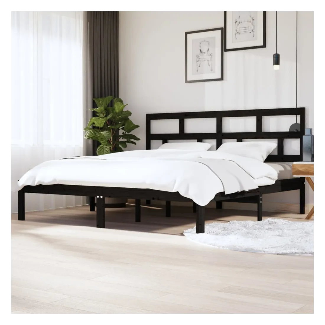 Cadre de lit sans matelas Noir Bois de pin massif 200x200 cm