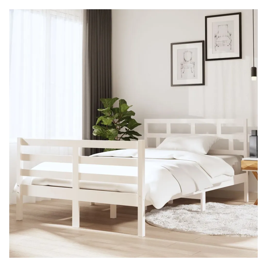 Cadre de lit sans matelas blanc bois massif