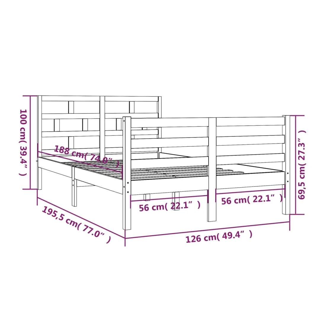 • Dimensions de la tête de lit : 126 x 4 x 100 cm (l x P x H)