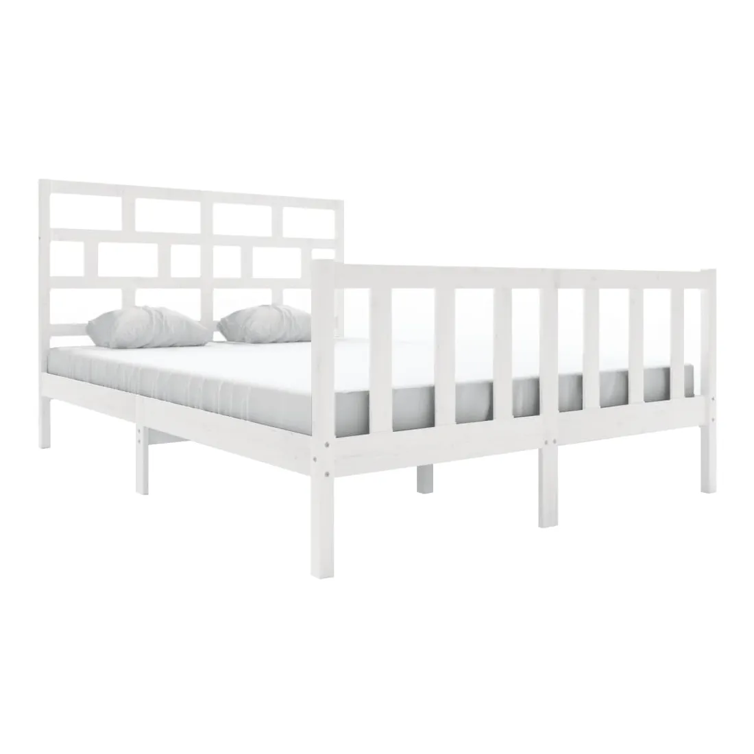 Cadre de lit sans matelas blanc bois massif 160x200 cm