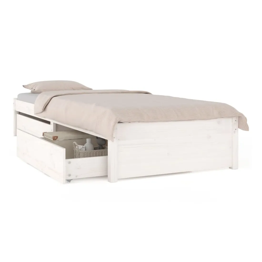 Cadre de lit sans matelas avec tiroirs blanc