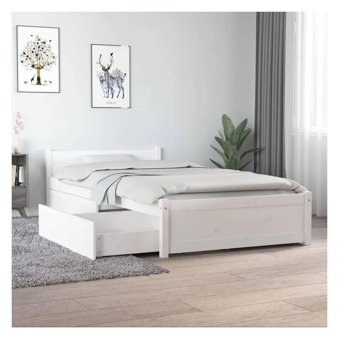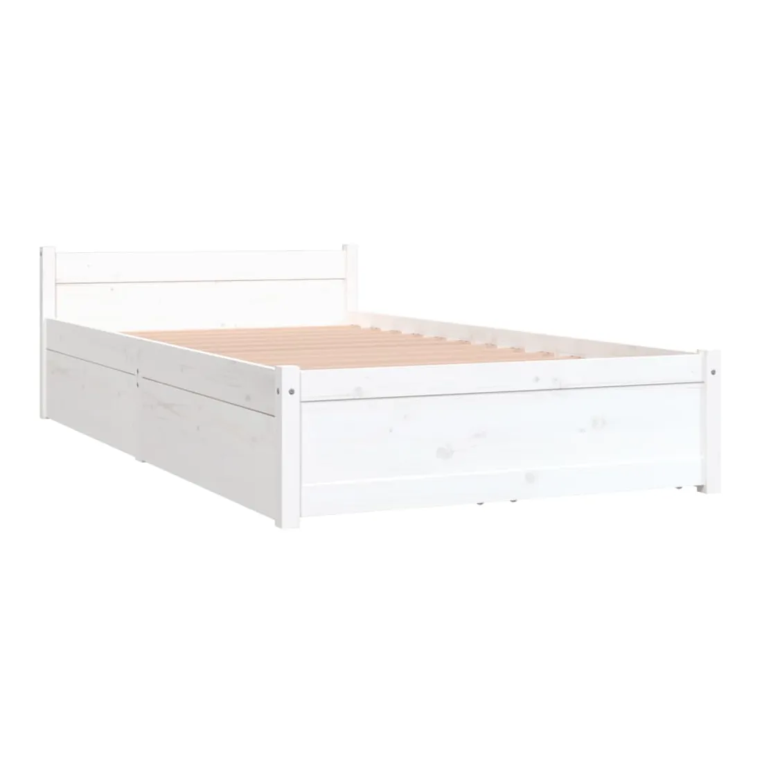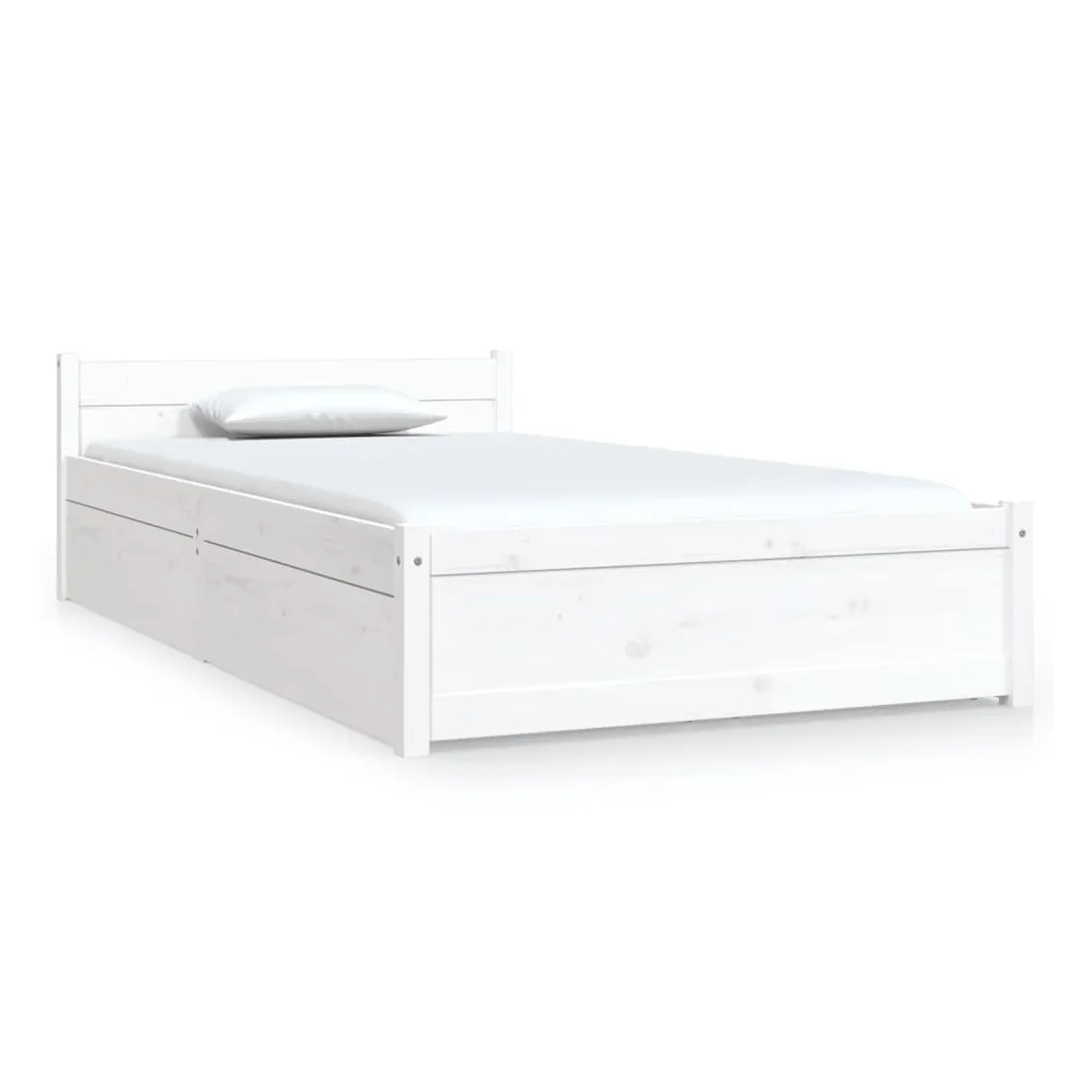 Avec un design simple mais intemporel, ce cadre de lit en bois sera un supplément vraiment pratique et décoratif à votre chambre à coucher. Bois de pin massif : le bois de pin massif est un matériau naturel magnifique. Le bois de pin a un grain droit et les nœuds donnent au matériau son aspect caractéristique et rustique.Lattes robustes : les lattes de contreplaqué assurent une bonne répartition du poids, garantissant que le matelas reste en place à chaque torsion de votre corps pendant le sommeil.Fonction de rangement : les tiroirs de lit inclus offrent suffisamment d'espace de rangement pour ranger vos articles essentiels, gardant votre pièce propre et bien rangée. Remarque :La livraison comprend uniquement le cadre de lit. Les matelas ne sont pas inclus. Vous pouvez consulter notre boutique pour trouver les matelas assortis.Ce cadre de lit convient à un matelas mesurant 90 x 190 cm (simple).