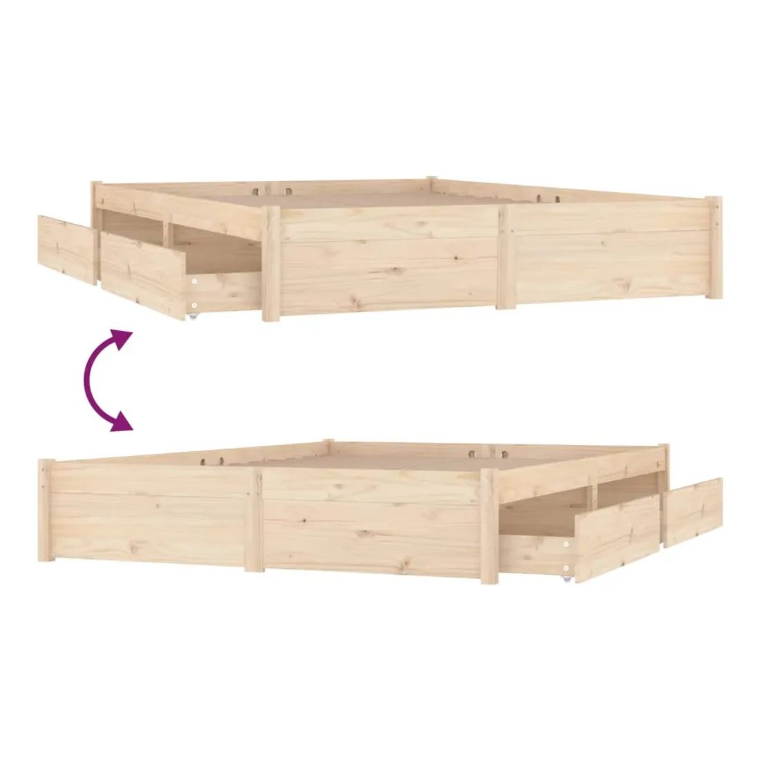 Avec un design simple mais intemporel, ce cadre de lit en bois sera un supplément vraiment pratique et décoratif à votre chambre à coucher. Bois de pin massif : le bois de pin massif est un matériau naturel magnifique. Le bois de pin a un grain droit et les nœuds donnent au matériau son aspect caractéristique et rustique. Lattes robustes : les lattes de contreplaqué assurent une bonne répartition du poids, garantissant que le matelas reste en place à chaque torsion de votre corps pendant le sommeil. Fonction de rangement : les tiroirs de lit inclus offrent suffisamment d'espace de rangement pour ranger vos articles essentiels, gardant votre pièce propre et bien rangée. Remarque : La livraison comprend uniquement le cadre de lit. Les matelas ne sont pas inclus. Vous pouvez consulter not