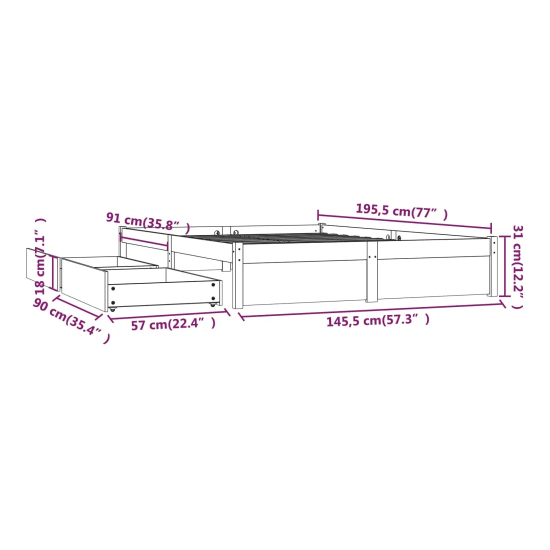 • Taille du tiroir : 90 x 57 x 18 cm (l x P x H)