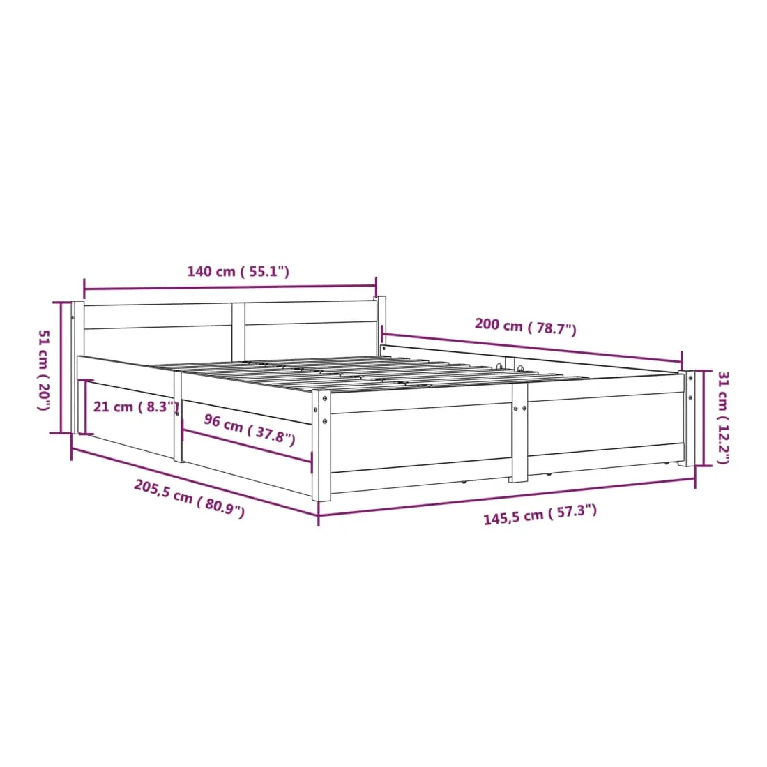 Cadre de lit sans matelas avec tiroirs 140x200 cm