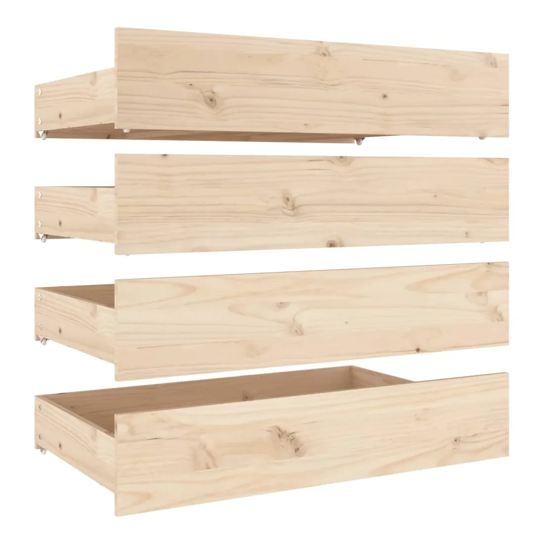 Ajoutez une touche moderne à votre chambre à coucher avec notre cadre de lit en bois classique ! Il apportera une touche pratique et décorative à votre intérieur. Bois de pin massif : le bois de pin massif est un matériau naturel magnifique. Le bois de pin a un grain droit et les nœuds donnent au matériau son aspect caractéristique et rustique. Lattes robustes : les lattes de contreplaqué assurent une bonne répartition du poids, garantissant que le matelas reste en place à chaque torsion de votre corps pendant le sommeil. Fonction de rangement : les tiroirs de lit inclus offrent suffisamment d'espace de rangement pour ranger vos articles essentiels, gardant votre pièce propre et bien rangée. Tête de lit confortable : la tête de lit classique vous permet de vous reposer confortablement