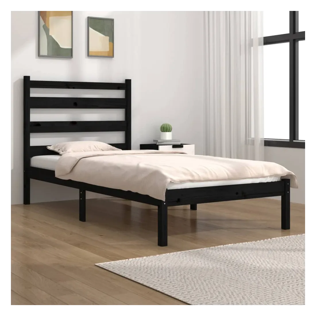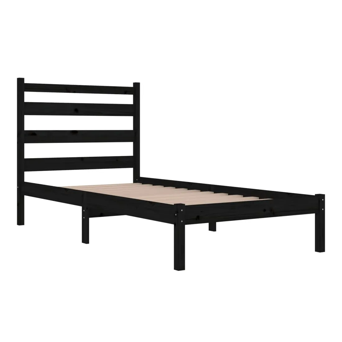 Cadre de lit sans matelas noir bois massif