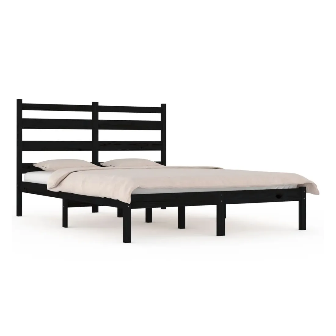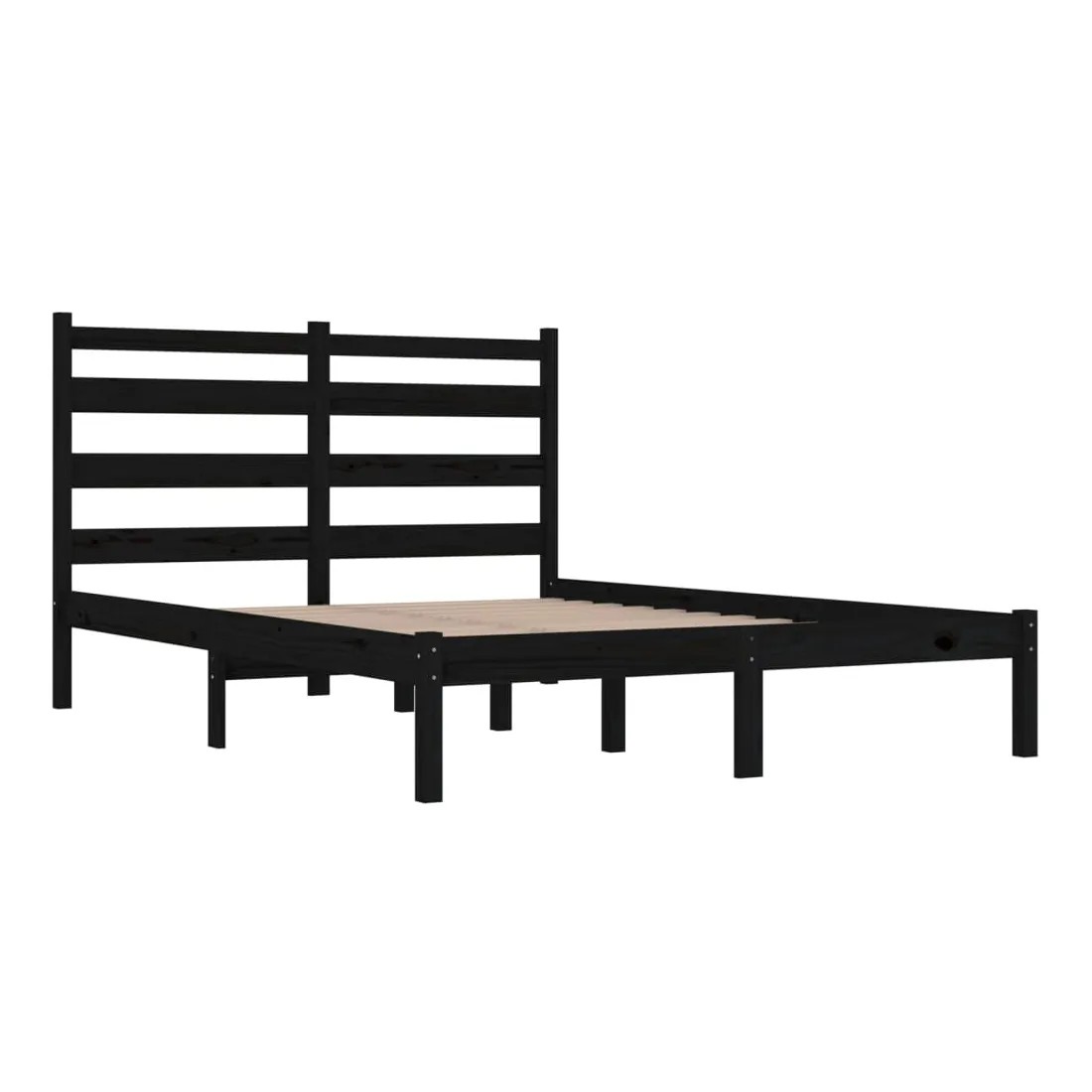 Cadre de lit sans matelas noir bois massif 140x190 cm