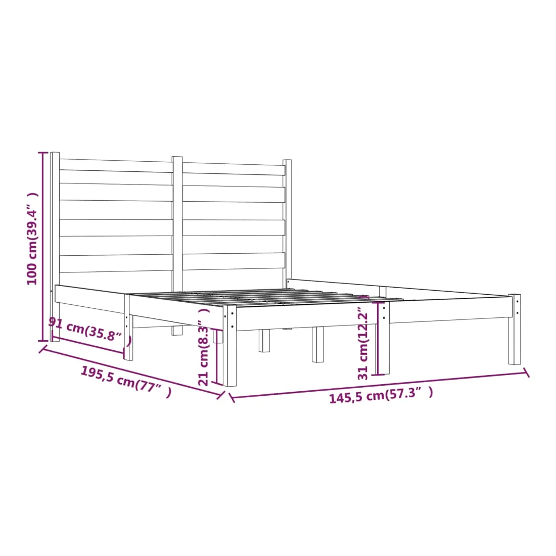 Quoi de mieux que de profiter d'une bonne nuit de sommeil à la fin d'une journée bien remplie ? Ce cadre de lit en bois classique est le choix parfait pour votre lit et la première chose que vous voulez vous détendre après une longue journée. Bois de pin massif : le bois de pin massif est un matériau naturel magnifique. Le bois de pin a un grain droit et les nœuds donnent au matériau son aspect caractéristique et rustique.Lattes pour un soutien supplémentaire : les lattes offrent un soutien supplémentaire à votre lit. Elles prolongent la durée de vie de votre matelas en absorbant la majeure partie du stress et du poids sur le lit.Tête de lit pratique : la tête de lit offre un soutien supplémentaire, augmentant le niveau de confort. En outre, elle peut maintenir vos oreillers en place pour un meilleur sommeil. Bon à savoir : La livraison comprend uniquement un cadre de lit. Le matelas n'est pas inclus. Vous pouvez consulter notre boutique pour trouver les matelas assortis.Certaines pièces de tête de lit sont emballées dans les cartons du cadre de lit en raison du manque d’espace.Ce cadre de lit convient à un matelas mesurant 140 x 190 cm.