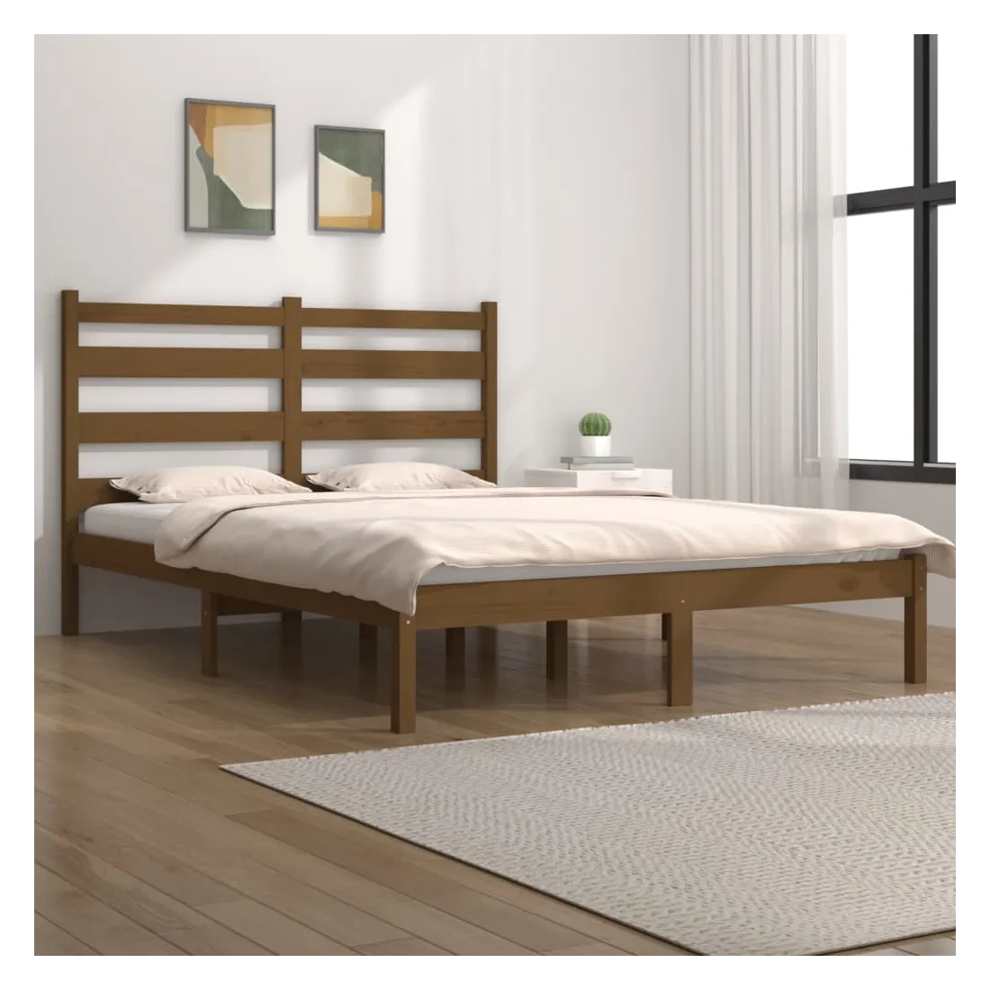 Cadre de lit sans matelas marron miel bois massif 200x200 cm
