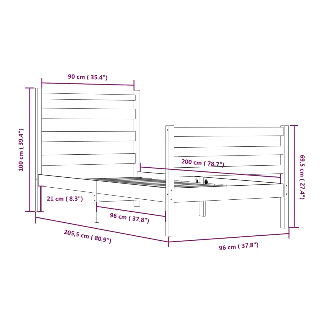 - Taille de matelas appropriée : 90 x 200 cm (l x L) (matelas est non inclus)