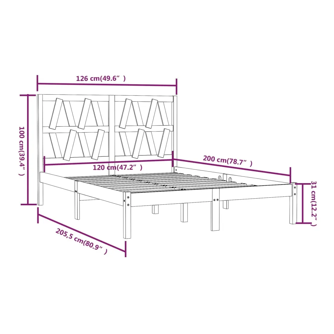 • Dimensions du cadre de lit : 205,5 x 125,5 x 31 cm (L x l x H)