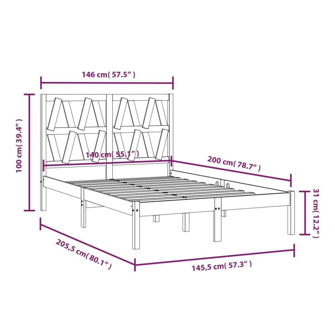 - Dimensions du cadre de lit : 205,5 x 145,5 x 31 cm (L x l x H)