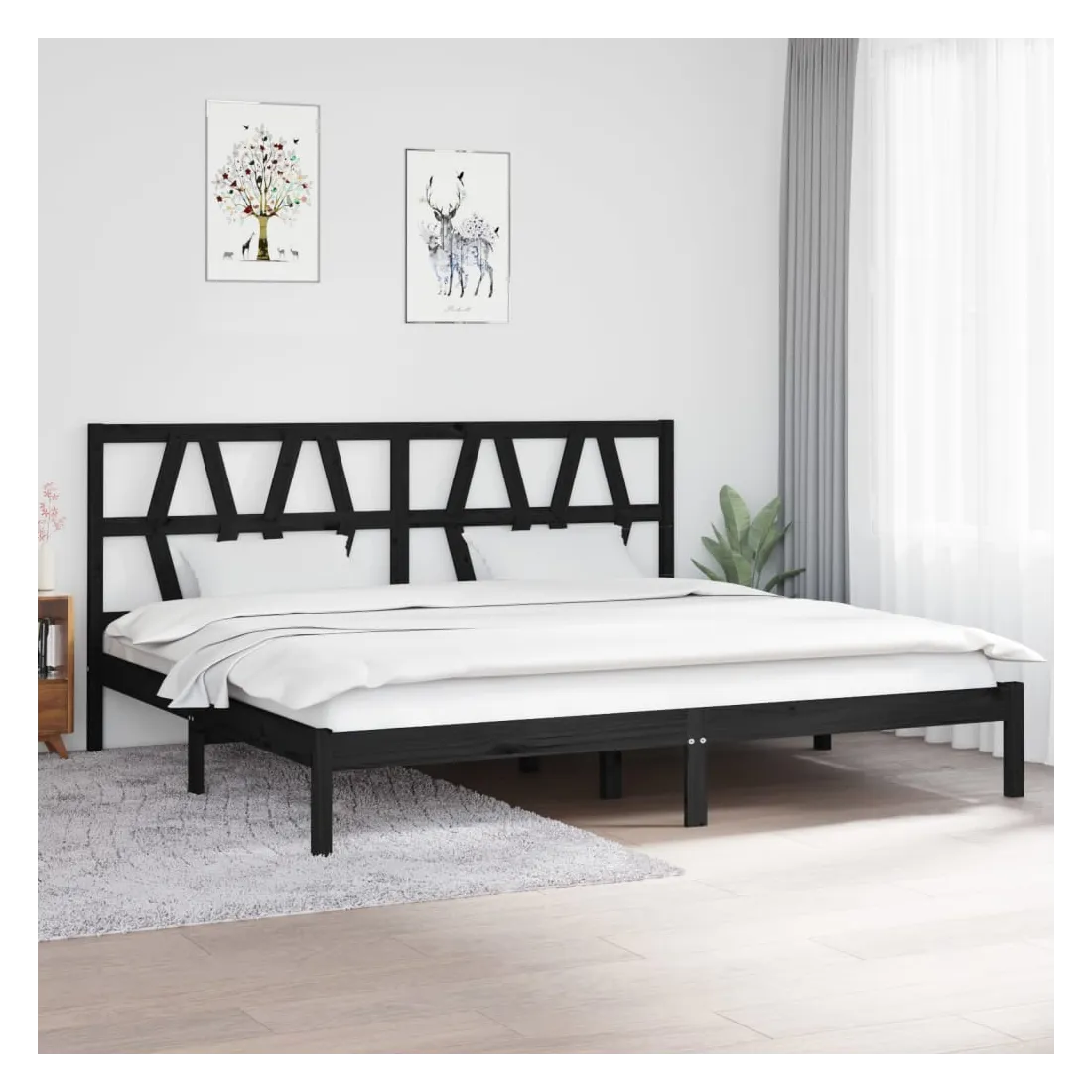 Cadre de lit sans matelas noir bois massif 200x200 cm