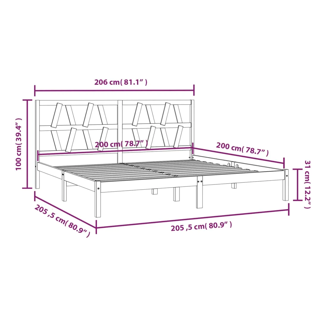 • Dimensions du cadre du lit : 205,5 x 205,5 x 31 cm (L x l x H)