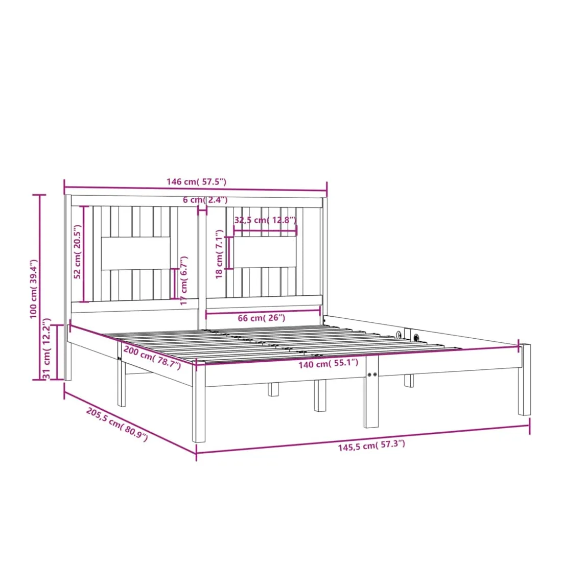 Cadre de lit sans matelas blanc bois massif 140x200 cm