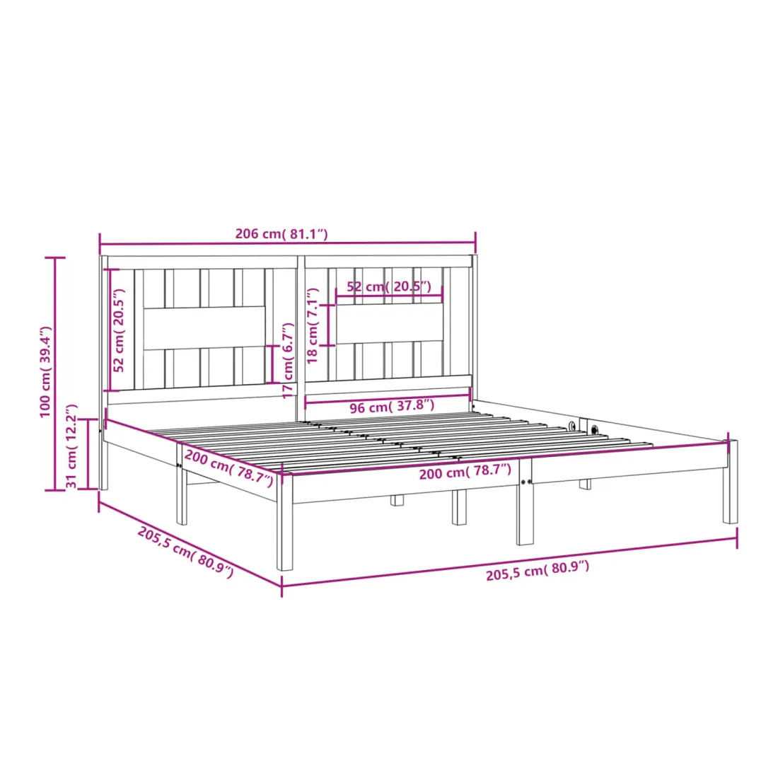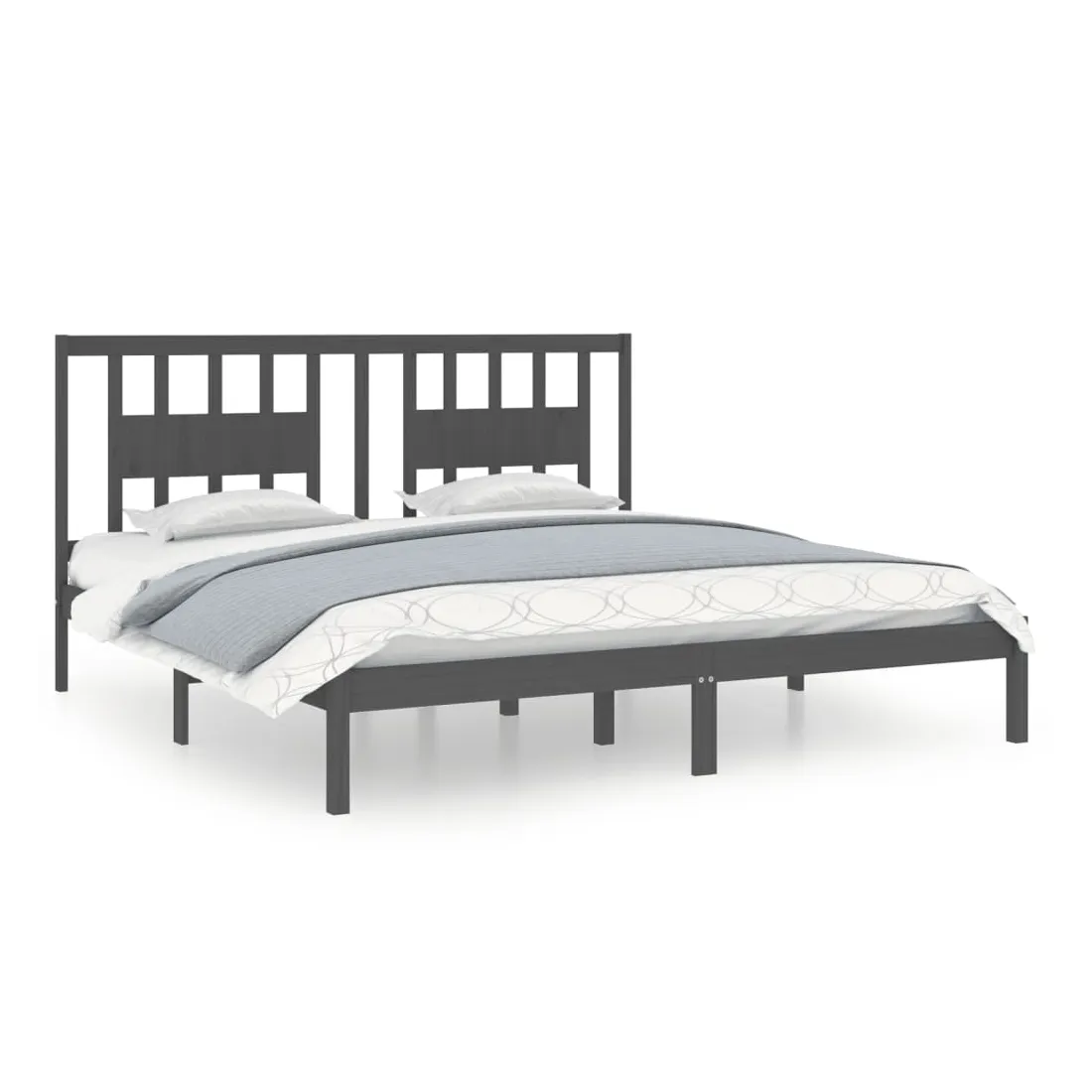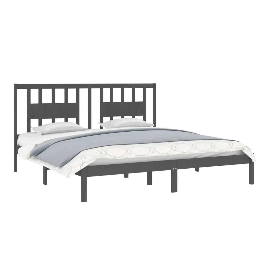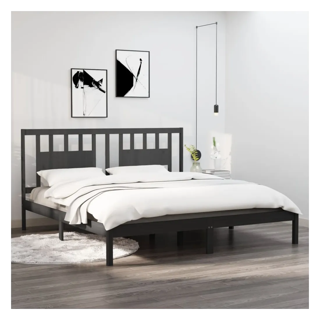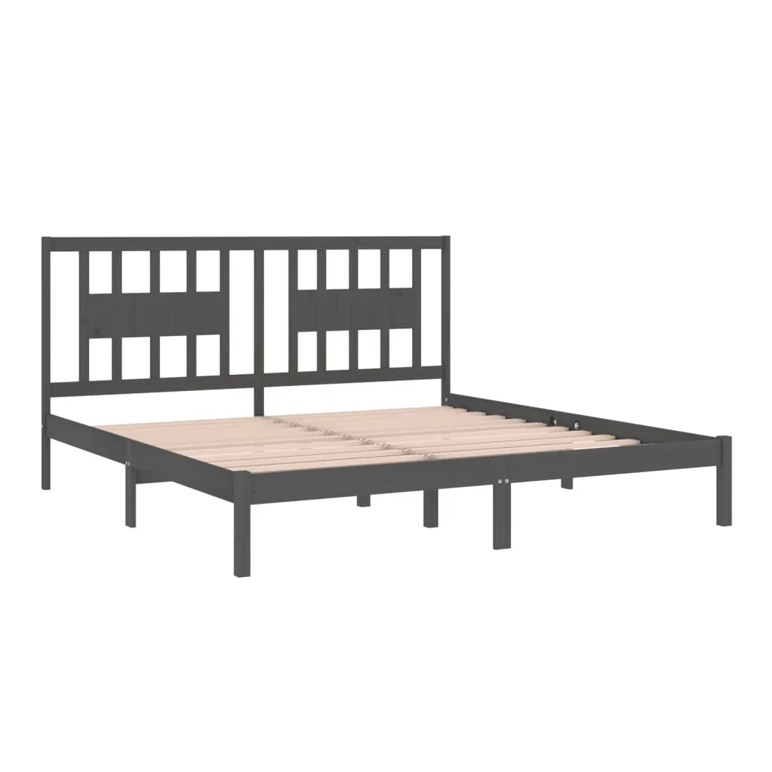 Cadre de lit sans matelas gris bois massif 200x200 cm