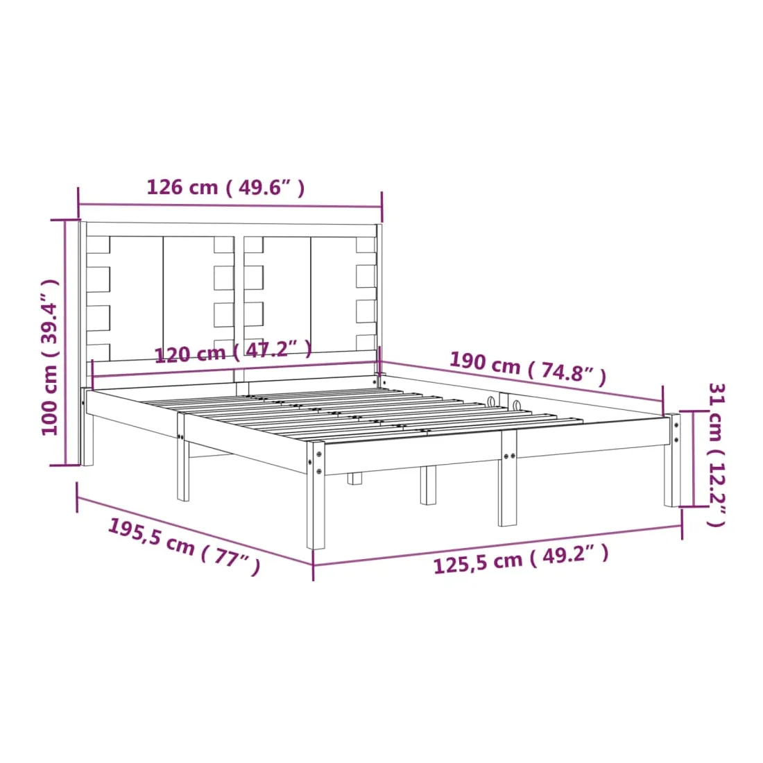 Cadre de lit sans matelas 120x190 cm bois massif