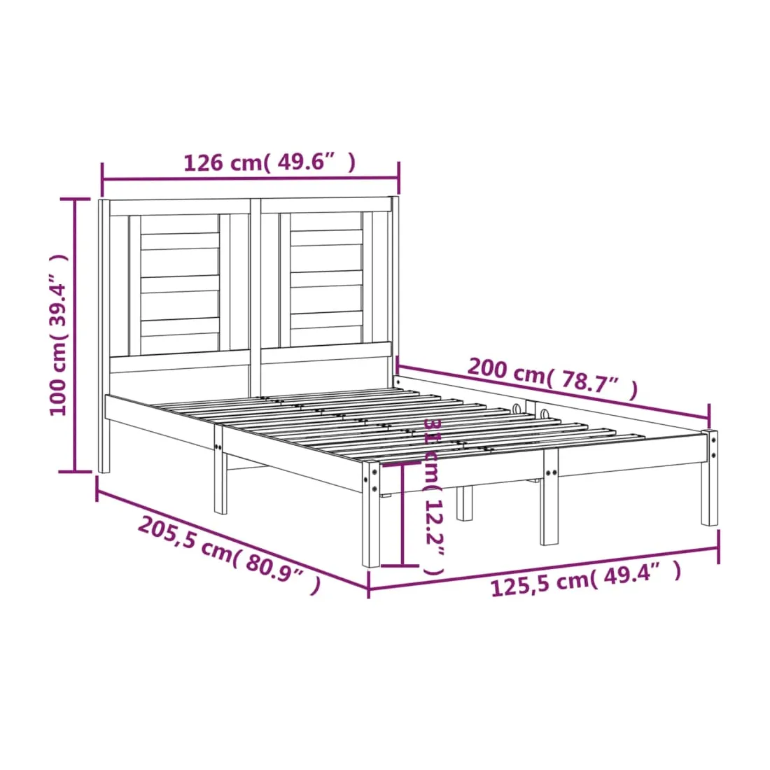 • Dimensions du cadre de lit : 205,5 x 125,5 x 31 cm (L x l x H)